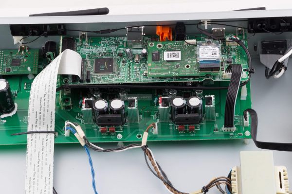 A Onkyo hátlapján sem időztünk sokat, hogy kiigazodjunk a részleteken. Itt pontosan annyi csatlakozó van amennyi feltétlenül szükséges egy zenelejátszóra. Egy pár analóg és egy-egy digitális (1 db koaxiális, 1 db optikai) kimenetet szolgálja a jelek továbbítását az erősítőbe vagy DAC-ba, hátul is találtunk egy USB A aljzatot, itt helyezkednek el a WiFi antennák, az Ethernet csatlakozó, a DAB/FM antenna, valamint a távezérlő aljzatok is. A készülék IEC tápaljzatot kapott, ami szintén joggal elvárható egy ilyen készüléknél. Sajnos beépített DAC-ja semmiféle egyéb külső forrást nem támogat, azaz nincs USB B, optika vagy egyéb digitális bemenet a hátlapon. Ezeket a "hiányosságokat" talán elnézőbben kezelnénk az NS-6130 alapmodellnél, de ebben az árban a konkurencia nagyobb része már rendelkezik ezekkel az extrákkal. Persze az optimista hifis erre csak annyit mond: ennyivel is kevesebb digitális áramkör rondít bele a hangzásba. Végül is ebben is van valami, és valljuk be őszintén, akad itt bőven lehetőségünk válogatni a zenei platformok körül.