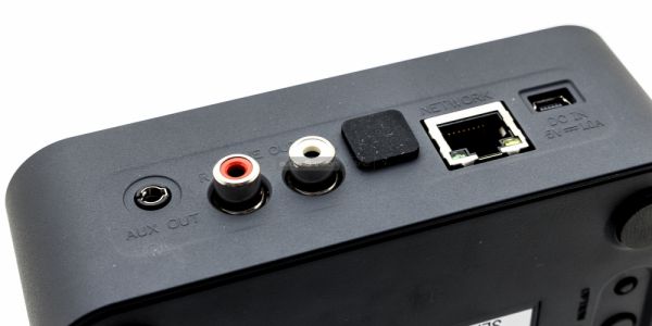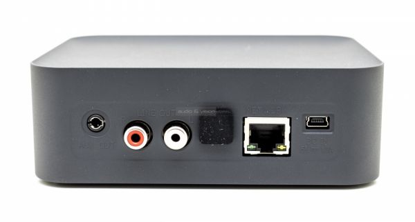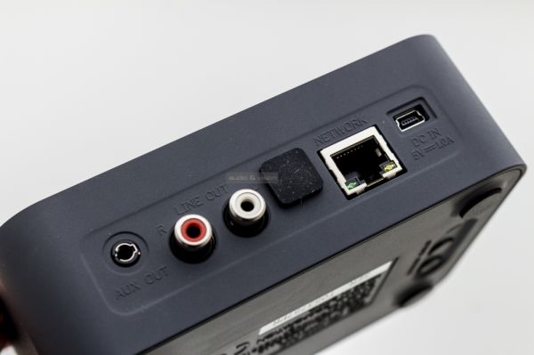 Szinte csak a legszükségesebb összetevők kerültek rá: az előlapot a szokásos, három fehér LED pont díszíti, néhány halovány felirattal. A hátlapon egy 3,5 mm-es analóg sztereó Jack és egy RCA áll rendelkezésünkre. Gumifedeles csapóajtó mögé került még egy Jack, a sort pedig egy Ethernet port és a tápaljzat (mini USB) zárják.