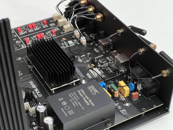 Két ES9038 Q2M szolgáltatja az analóg kimenetek részére a jelet. Az elképesztően jól kinéző, hatalmas színes LCD most is adott, ami ráadásul érintésérzékeny. Roon Ready, Tidal Connect, DLNA, UPnP kész és ami még említésre méltó, akár egy M.2 NVME SSD-t is rakhatunk az aljába háttértárként. Szimmetrikus XLR kimenetekkel is felszerelték az RCA mellett. Android 11-en alapuló operációs rendszer vezérli jól és főleg megbízhatóan, ami sajnos nem teljesen magától értetődő mostanság.