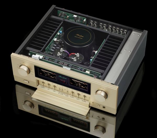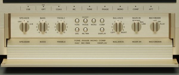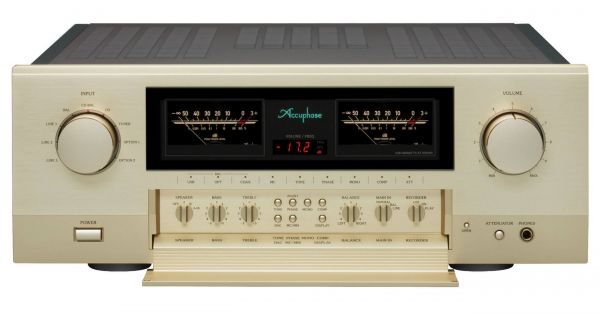 Az előlapon a főszerepet a tőlük már megszokott, gyönyörű Deprez műszerek játsszák, a klasszikus kinézet itt is megjelenik. Zölden világító Accuphase logó, piros digitális számjelzés a hangerőnek, illetve lehajtható előlap, ami a használathoz és beállításokhoz szükséges nyomó- és tekerőgombokat rejti maga alatt, valamint fejhallgató csatlakozót - mindez olyan kidolgozással, amire nem túlzás az ipari műremek jelzőt aggatni.