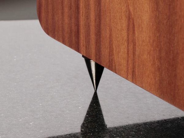 Az egymással párhuzamos oldalfalak élei mindenhol nagyon szépen le vannak kerekítve, a megmunkálás nem csupán hibátlan, hanem példás. Maga a ház 18 mm-es MDF-ből készült, amit egyenesen a referencia sorozatukból emeltek át. Mindehhez jön még, hogy belül többszörös, rendkívül vastag merevítést alkalmaztak, és csillapítóanyagot is használtak, utóbbit a hangszórók mellett.