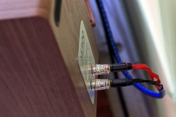 Hátul szimpla és minőségi, tehát teflon szigetelésű csatlakozókat találunk, valamint a felső szegmensben egy meglepően keskeny és vízszintesen végigfutó reflexnyílást. Ez a lőrésszerű megoldás nem újdonság, de nem is igazán elterjedt, az alkalmazása viszont minden bizonnyal okkal történt az AE500 esetében. A hangdobozok párba válogatva kerülnek közös karton ládába, erről meggyőződhetünk a csatlakozók felett található sorszámok által.