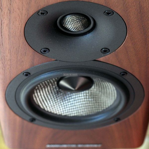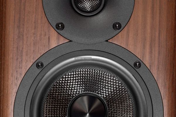 A konstrukció kétutas, egy mélyközép- és egy magassugárzót integráltak az előlapba, amelyek szintén nem hétköznapiak már ránézésre sem. A 125 mm-es mélyközépsugárzó túlméretezett, 35 mm-es lengőtekerccsel rendelkezik, amelyet a gyártó alacsony hőmérsékleten tömörít, így rendesen terhelhető, valamint dinamikus és pontos hangot biztosít. A hangszórónak optimalizált motorja és felfüggesztési rendszere van a maximális linearitás és a legkisebb torzítás érdekében, mindehhez jön még a membrán szénszálból készült anyaga, aminek könnyű jellege növeli az átmeneti sebességet. Talán még ennél is érdekesebb, hogy a 25 mm-es magassugárzó is szénszálból készült, ami papírforma szerint könnyebb, gyorsabb, pontosabb, mint a megszokott anyagok, de még természetesebb és semlegesebb is a hangképe, mint egy textil dómnak.