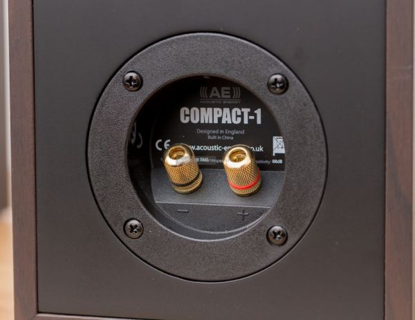 Az AE Compact 1 neve mögötti jelentést kutatva a Compact nem igényel sok magyarázatot. Az alig 22 cm magas hangfalacska tényleg kompakt, hiszen kis mérete ellenére nem egy olcsó, spórolós dobozka, inkább a nagyobb típusok sűrítménye. Az angol Acoustic Energy láthatólag nem az ár miatt akart kisebbet készíteni, hiszen a magassugárzó, a reflexnyílás, a kábelcsatlakozók és maga a doboz is olyan, amilyet a nagyobb modelleken is láthatunk. Az egyetlen, nem méretbéli különbség a mélysugárzó membránja, ami kivételes módon nem alumíniumból készült. Ennek okáról azonban csak tippjeink vannak.