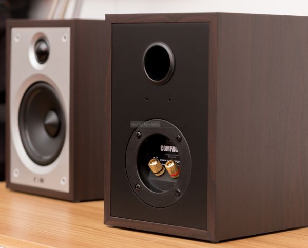 A doboz kivitele saját árkategóriáján belül nagyon jó. Az oldallapok kifejezetten szép, famintázatú fóliát kaptak, az előlap ezüstszínű, a hátlap fekete. Az illesztések és a fólia eldolgozása kiváló. A hangfalrostély igényes, fém tüskés rögzítést kapott. Ennél jobb csak a mágneses lehetne, de az ebbe az árba sajnos nem fér bele. Névleges terhelhetősége 100 watt, de ez nem azt jelenti, hogy nagyot szól, és ki lehet vele kergetni a szomszédokat a világból. A gyári adatok szerint a dobozkából hatékonyan kipréselhető legalsó frekvencia 65 Hz, míg a felső határt 28 kHz-ben adták meg. A Compact 1 érzékenysége 88 dB, impedanciája pedig 8 Ohm. Vagyis a műszaki adatok semmi rendkívülit nem ígérnek. Így az igényes megjelenés mellett leginkább a kicsi dobozhoz mérten nagy, 3,2 kg-os súlyra kaphatjuk fel a fejünket, bár ez sem rendkívüli.