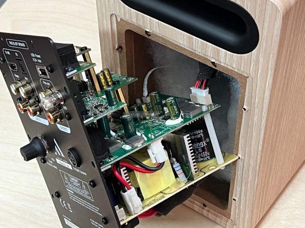 Az összesen négy hangszórót négy különálló D osztályú erősítő hajtja meg egy aktív keresztváltó és DSP vezérlő társaságában. Mindez az Argon Audio saját tervezése. A legtöbb belépőszintű hangfalpárnál ott kötnek kompromisszumot, hogy a mélyközép- és magassugárzót is csak egy erősítőre bízzák, passzív keresztváltóval kombinálva. A diszkrét erősítő, aktív keresztváltó és DSP megfelelő kombinációjával sokszor meglepően jó hangminőség érhető el. További hab a tortán, hogy a legtöbb 100 000 forint körüli hangfalpárhoz képest egész otthonbarát külsőre törekedtek a dánok.