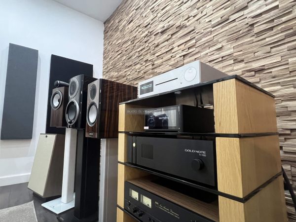 - A bemutatóterem hátsó részében Gold Note XT-7 high end hangfal biztosítja majd a zenét. Ehhez a jelet AVM Evolution MP 3.3 streamer/előfok szolgáltatja, Vitus Audio ultra high end végfokkal kiegészítve.
