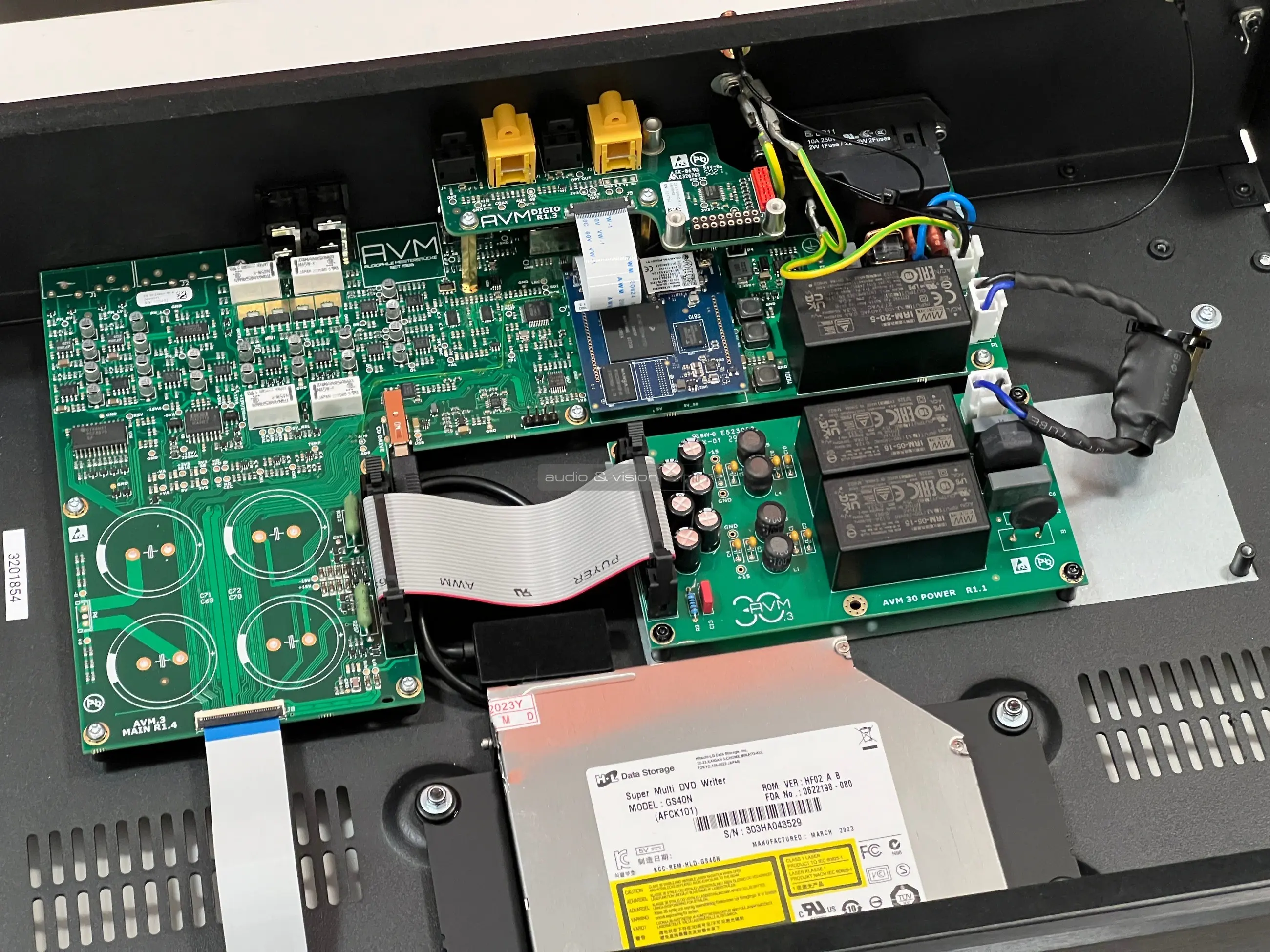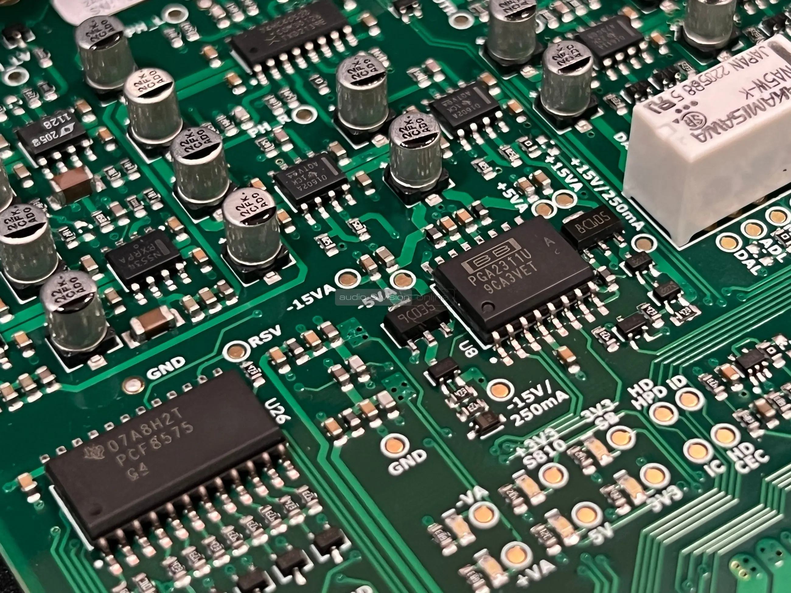Belül egy ESS 9038 Q2M chip felelős az A/D átalakításért, az áramkörök két különálló NYÁK lapon helyezkednek el a CD futómű mögött.