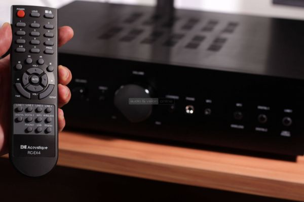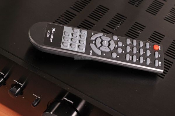 A ki/bekapcsoló gomb körül fénylő kör pirosan világít bekapcsolva, és kéken kikapcsolva, ez eleinte minket is összezavart, mert pont az ellenkező színjelzést szoktuk meg. A forrásválasztó gombok logikáját is meg kellett szoknunk (ugyanaz a gomb két forráshoz is szolgál és aszerint választható ki a bemenet, hogy hányszor nyomjuk meg). Segítség viszont, hogy a mellékelt távvezérlőn minden funkcióhoz dedikált gomb társul. Utóbbival gond nélkül kezelhettük az erősítőt, a jelszint beállításán és a forrás kiválasztásán kívül nem is kellett mással foglalkoznunk.