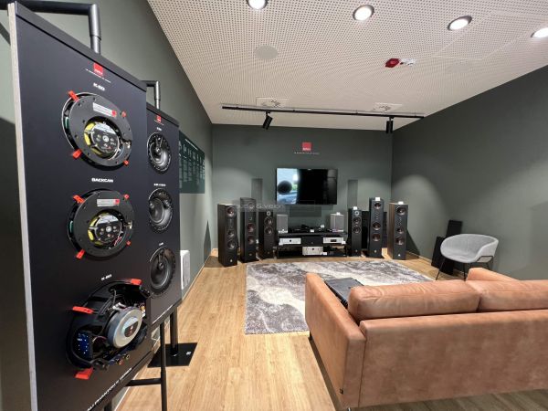 Az Audio Forum a legújabb hifi szaküzlet Budapesten, 2022 végén nyitotta meg kapuit. A belépőtől a high end kategóriáig számos hangrendszer kapható itt, a luxusszintű szobaékszer hangsugárzóktól a legdiszkrétebb opciókig. Utóbbi ügyében látogattunk el hozzájuk, nevezetesen a dán székhelyű DALI beépíthető hangfalait vettük közelebbről szemügyre. A gyártónak dedikált, Dolby Atmos-képes házimozi hangrendszerrel felvértezett helyiség szomszédságában Focal és B&W beépíthető hangsugárzók is találhatók. A DALI viszont kreatív módon tette láthatóbbá PHANTOM szériájába tartozó termékeit.