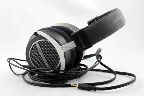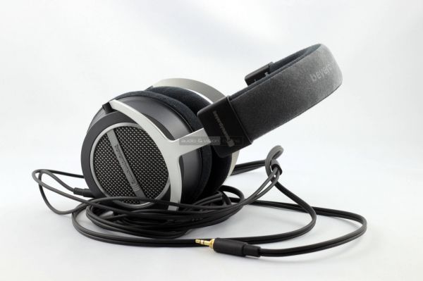 Az alkatrészek tehát kifogástalan minőségről tanúskodnak. A hangszórókamra remek minőségű, matt fényű barnás műanyagból készült. A védőháló és a rajta áthúzódó Beyerdynamic embléma diszkréten elegáns, szinte már méltóságos. A kamrákat tartó, C-alakú, alumínium villás felfüggesztés széleit igényesen lekezelték. A pántba betolható szárbetéten kis pontok kapaszkodnak meg a mechanikába, szinte egyáltalán nem kattognak, ahogy húzzuk-toljuk őket. Mindezt megkoronázza a párnák minősége, a gyártó leírásának megfelelve valóban olyan puha a kárpitozásuk, mintha bársony lenne. Részben mikroszálból, részben alcantara nevű szövetből készültek. A bennük lévő szivacsos bélés kicsit feszesebb, persze az évek során a hab majd megpuhul és cserélni kell. Macskatámadás, fiók becsípődés és egyéb hasonló baleset esetén a kábel is pótolható, mivel moduláris. A hangszórókamrába két 3,5 mm-es Jack csatlakozó pattintható be, a vezeték másik végén pedig a gyártótól megszokott módon 3,5-ről csavaros adapterrel 6,3 mm-re alakítható, aranyozott végződést kapunk.