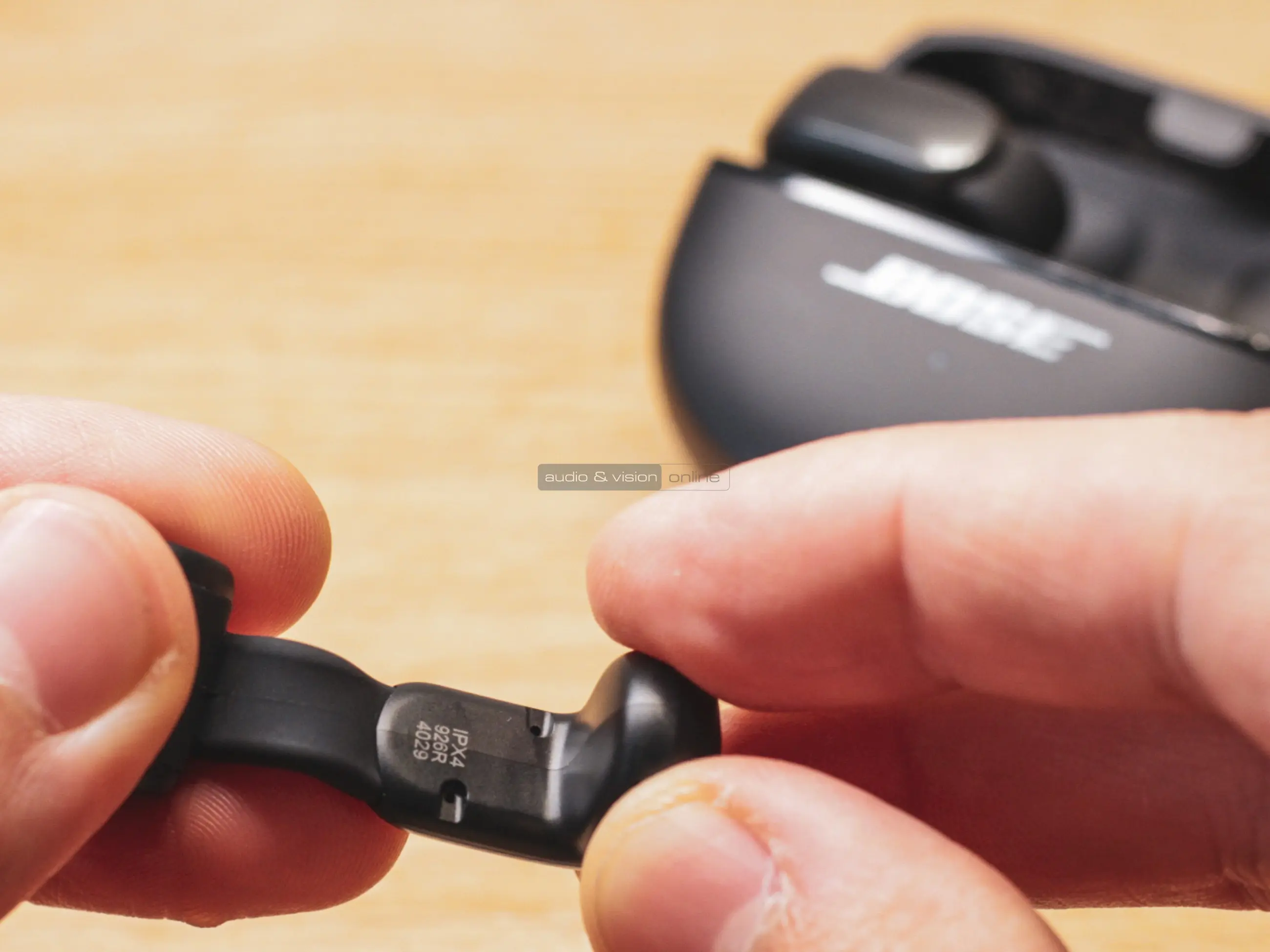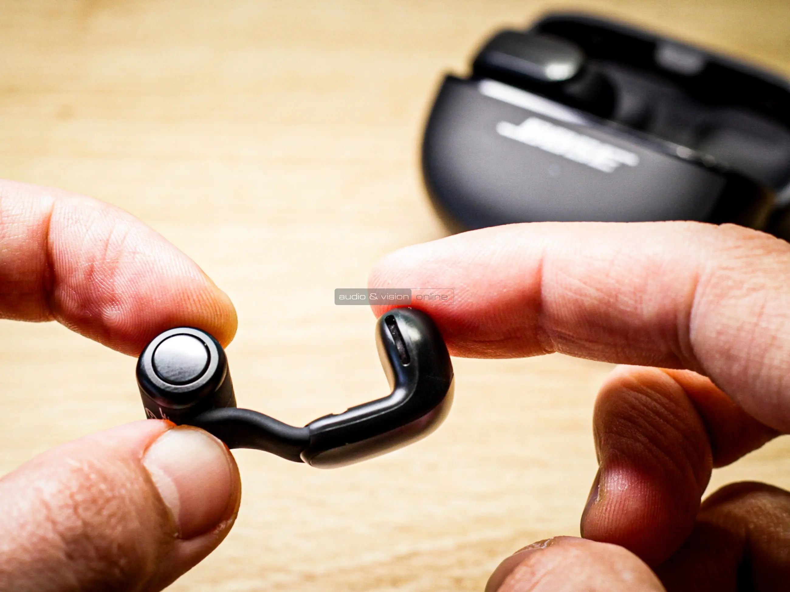 A fülhallgató három fő részből áll. Egy hengerrel kezdődik, ami az akkumulátoron kívül nem tapizós felületet, hanem egy rendes fizikai nyomógombot (köszönjük, Bose mérnökök!) tartalmaz. Ezt egy szilikon borítású lemez köti össze a hangszórókamrával. Ez s kis szakasz gondoskodik róla, hogy a fülhallgató ne essen ki a fülből. A hangszórókamra behajlik a fülbe, de ahogy a mellékelt fotók mutatják, nem érintkezik a hallójárattal. A belső oldalon egy-egy kisméretű lyuk is látható, valószínűleg a telefonálásra szolgáló mikrofonokat rejtik.