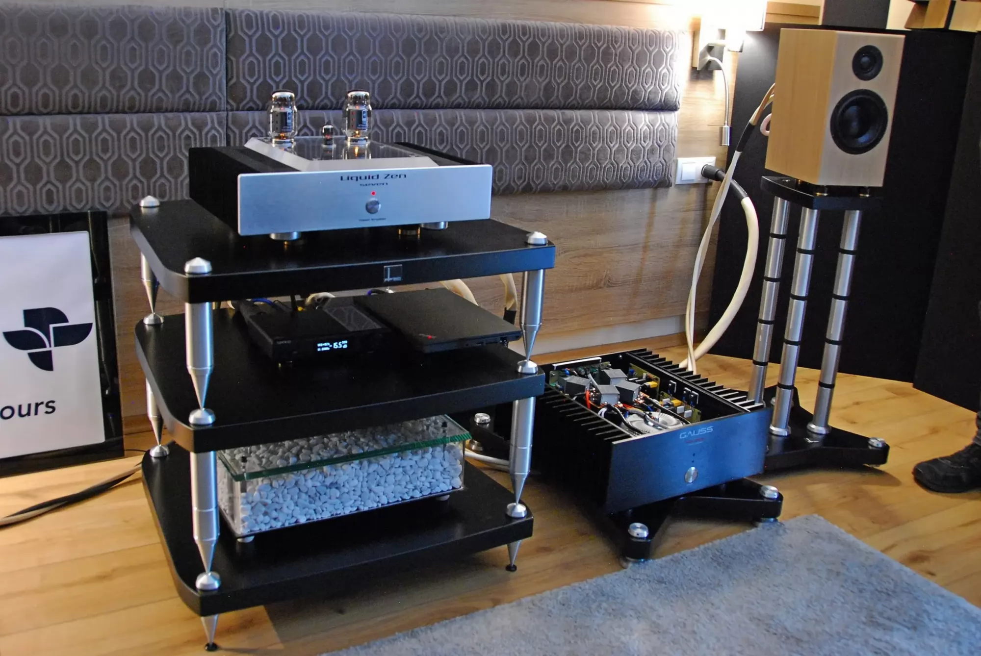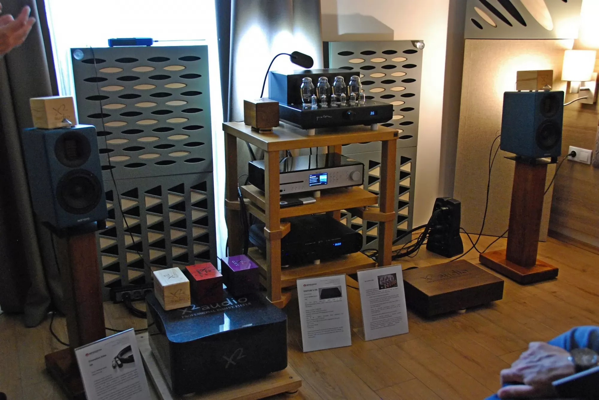 USA Audio: Az USA Audio a 107-es szobában csöves monoblokkokkal hajtott meg filigrán álló hangfalakat, az eredmény pedig önmagáért beszélt. Klasszikus példája volt annak, hogy hatalmas tartalékokkal mit lehet kihozni szerény termetű dobozokból.