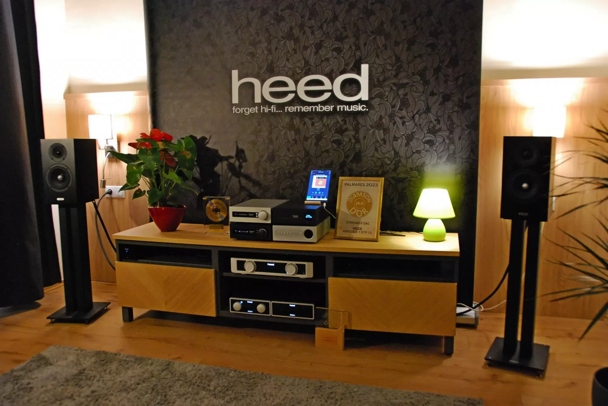 Heed Audio: A Heed Audio ezúttal a legkisebb rendszerét hozta el, ami majdnem a legolcsóbb volt a kiállításon, mégis hatalmasat szólt, központban az új állványos dobozukkal. Még arra is odafigyeltek, hogy a szép megszólalást hangulattal, így virággal, éjjelilámpával fokozzák.