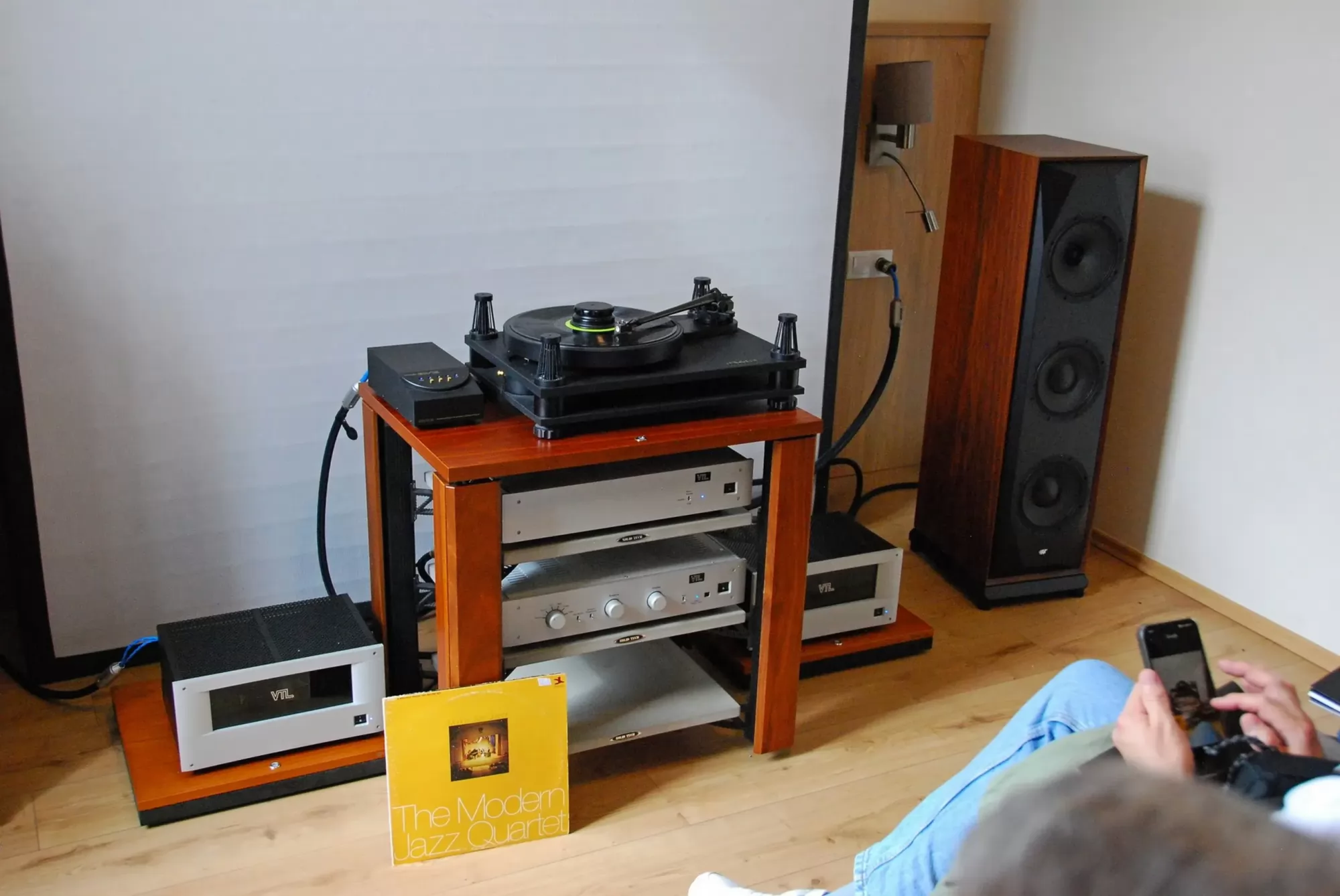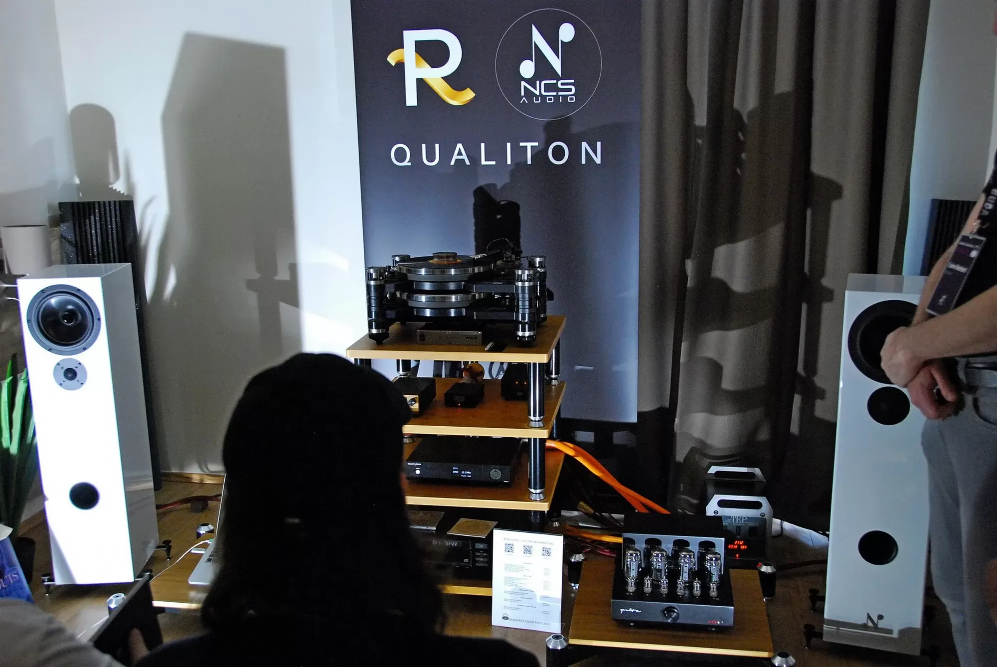 NCS Audio/PR Audio/Qualiton: A 104-es szobában a NCS Audio/PR Audio/Qualiton triumvirátusa fogadott minket, ahol az analóg vonalon volt a hangsúly. Gondosan összeállított rendszer mutatta meg magát, ahol a kiemelt szerep egy Kronos lemezjátszóé volt.