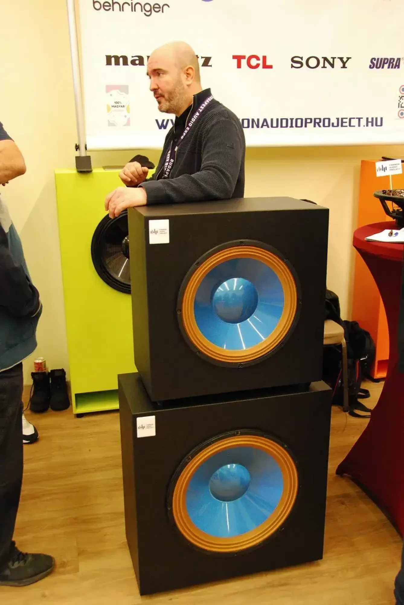 Pannon Audio Project: A Pannon Audio Rroject kis helyet foglalt, viszont annál nagyobb mélyládákat állítottak ki, amelyek színes membránja csak úgy vonzotta a szemeket. Voltak is érdeklődők szépszámmal, akiket nagyon közvetlenül, barátságosan fogadtak.