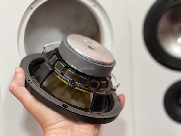 A korábbi GLE modelleket alumínium membrános hangszórókkal szerelték, az áttervezett változatnál azonban egy másik fémre, a titánra esett a fejlesztők választása, alkotásuknak a "Titanium Wave Surround" fantázianevet adták. A Canton "Wave surround" technológiája maximális kitérést tesz lehetővé és a gyártó ennek segítségével szeretne még több dinamikát kicsiholni a belépő szintű szegmensből. A 2 db 219 mm-es mélysugárzó a gyártó ígérete szerint még pontosabban követi a gyors zenei impulzusokat. A középsugárzó sem kicsi: 174 mm-es és szintén titán membránt kapott, mindhármat meghajtót erős mágnesekkel szerelték fel. A Canton a titán membránoknak köszönhetően agilitást, nagy dinamikát, kiemelkedő felbontást és kiegyensúlyozottságot ígér. Minden bizonnyal emiatt is építették a középsugárzót egy külön egységet képező kamrába a hangdobozon belül – megint csak egy olyan érdekesség, ami kívülről nem látszik és inkább a drágább osztályokban találkozhatunk vele. A Canton GLE 100 minden membránja fém alapú, a magassugárzó is, itt azonban nem titánt, hanem a jól bevált, 25 mm-es, alumínium-mangán dómot használták, amelyet az ideális hangeloszlás és csatolás érdekében kifinomult hullámvezetőkkel láttak el. Az optimalizált keresztváltónak köszönhetően a felső határfrekvencia 40 kHz. A GLE 100 névleges impedanciája 4-8 Ohm, érzékenységét a gyártó nem közli, a meghallgatások alapján a 88-89 dB-es érték tűnik a legvalószínűbbnek.