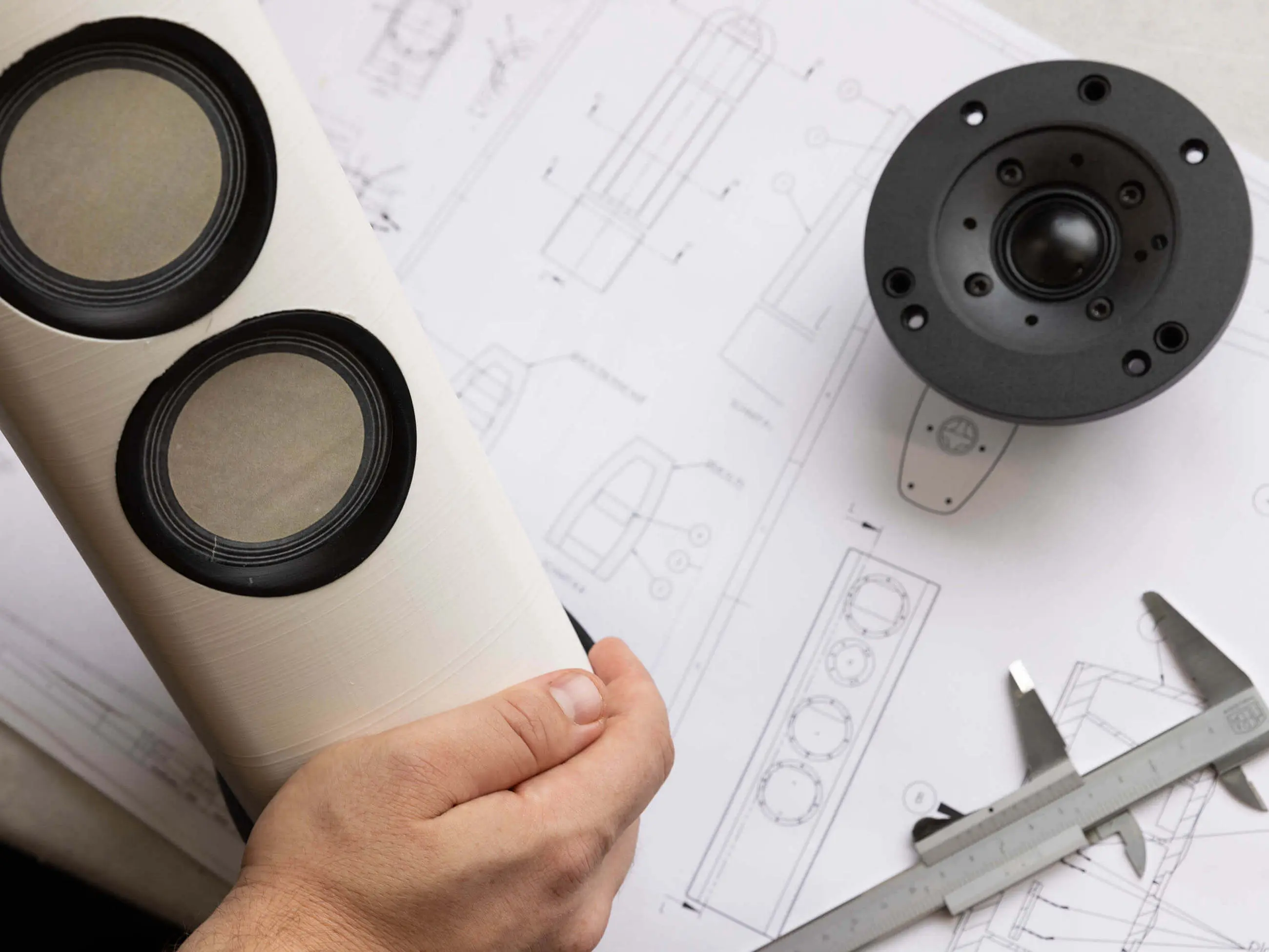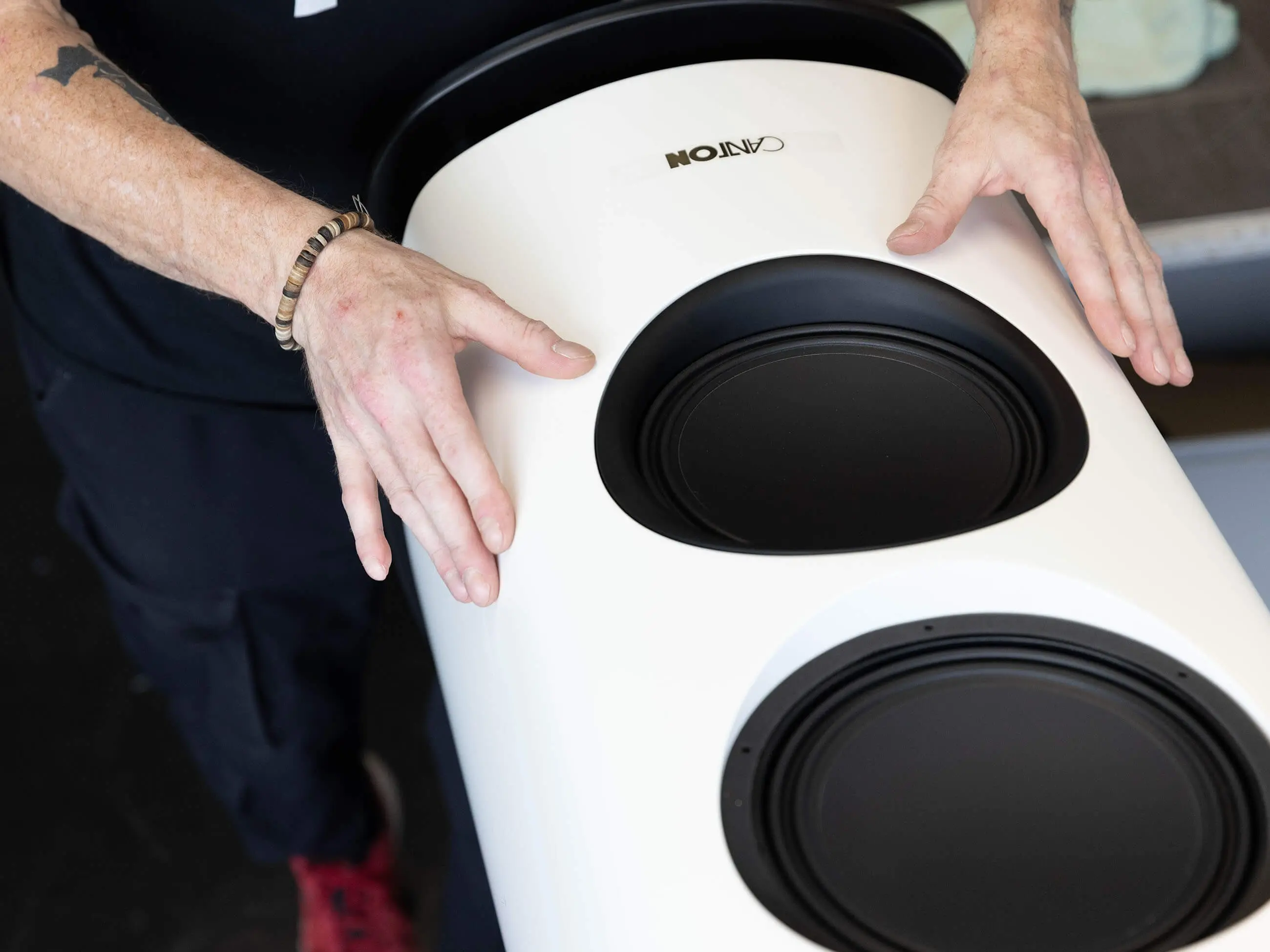 A magasfényű bevonatot a fekete és fehér változat esetében tizenkét rétegben viszik fel, csiszolják és polírozzák, ami jelentősebb mélységérzetet ad a hangdobozoknak. Magához a doboztesthez tartozik a talp is, ami tulajdonképpen kiegyensúlyozza és stabilizálja, hiszen annak alja, a fedőlaphoz hasonlóan elég nagy ívben van lekerekítve.