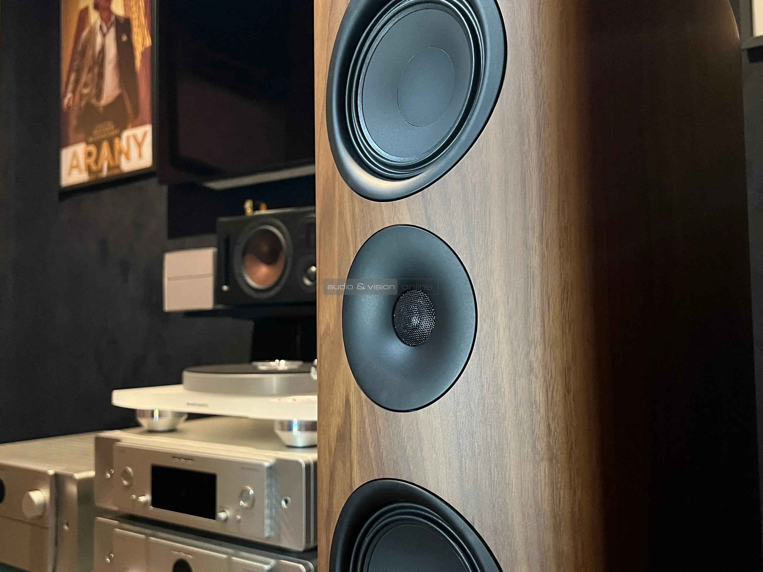 Emlékeinkben és írásunkban kutakodva a korábbi 7-es modell nem akart mindenkinek megfelelni, de a tervezők sajátos elképzeléseit maradéktalanul képes volt megmutatni. Abban nagyobb hangszórókat alkalmaztak, a mélytartomány mégsem volt túlzó, inkább tapintatos. Ezeket most redukálták, viszont érezhetően nagyobb energiákat képes így megmozgatni, ami a radikális fejlesztéseknek köszönhető, és látványelemként sem akar mindenáron dominálni. Nekünk a dió furnéros kivitelhez volt szerencsénk, amin látszik, hogy nagyon masszív hangfal a New Reference 7, azonban marad a kecses és abszolút környezetbarát megjelenés, így sokkal könnyebben illeszthető az otthonunkba, használaton kívül nem telepszik rá az életünkre. Egészen addig, amíg meg nem szólal!