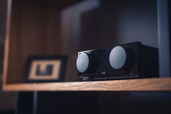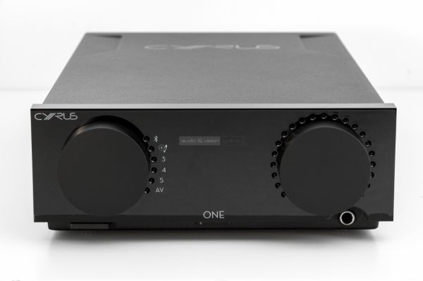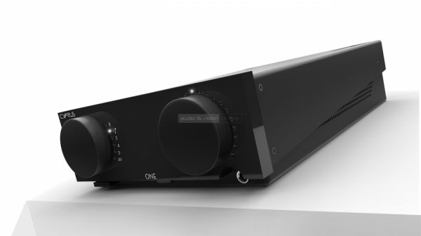 De nézzük meg kicsit közelebbről cikkünk főszereplőjét is! Először kézbe véve a legkevésbé sem emlékeztet az eddig nálunk megfordult, jellegzetesen Cyrus-os modellekre, legfeljebb a méretei. Lakkozott fekete előlapján találhatunk két jól megtermett, kellemes tapintású gumírozott potmétert, melyek egyike a bemeneti perifériák kiválasztását, másik pedig a hangerő szabályzását szolgálja, s mindezeket igen kifinomultan teszi. Aki otthonosan mozog a hifi világában, annak esetleg egy jó nevű, nemzetközileg elismert magyar gyártó termékei juthatnak eszébe a Cyrus ONE-ról. Digitális kijelző helyett állítható fényerejű fehér LED pontok mutatják meg, hogy éppen melyik tárcsát hova tekertük. Érdemes is használni a mellékelt távvezérlőn (vagy applikáción) található fényerőszabályzót, hiszen legerősebb álláson, lazán bevilágít egy sötét nappalit. Az előlapon szintén helyet kapott a beépített A/B osztályú fejhallgató erősítő 6,3 mm-es csatlakozója, illetve a bal alsó sarokban gondosan elrejtve, a ki/bekapcsoló gomb.