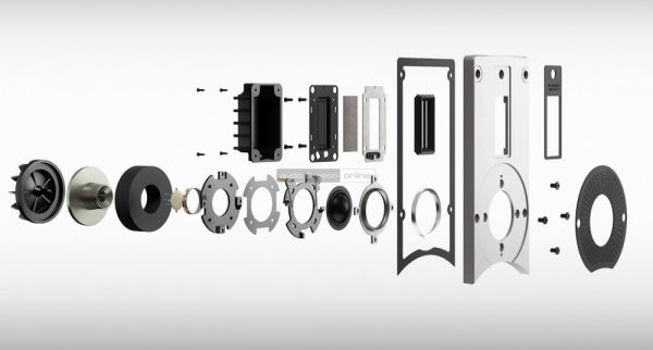 A hibrid magassugárzó modul régóta alkalmazott DALI-s találmány, nem mellékesen szabadalmi oltalom alatt áll, egészen hasonló az EPICON-éhoz, a helyére szerelve is érdekes látványt nyújt, ám az igazi érdekességek az úgynevezett robbantott ábrán vehetőek szemügyre. Köszönet érte a DALI-nak! Ezt a két hangszórót egy közös alumínium öntvény lapra vagy inkább keretre erősítették.