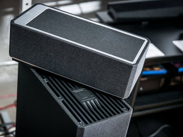 A BP9020 tetején van egy minőségi alumínium fedőlap, ami szintén egy ötletes megoldás, hiszen sztereó zenehallgatásnál óvja ezt a részt, eltávolítva viszont csatlakoztathatunk egy Definitive Technology A90 Atmos hangsugárzót, ami gyárilag csak a nagyobb modellek privilégiuma.