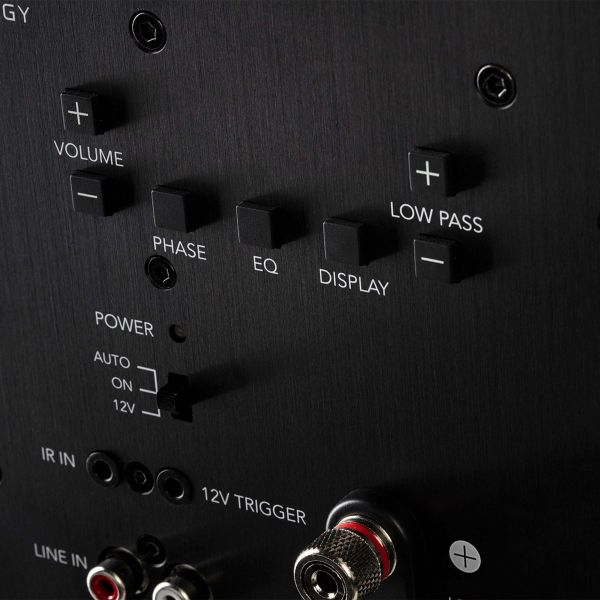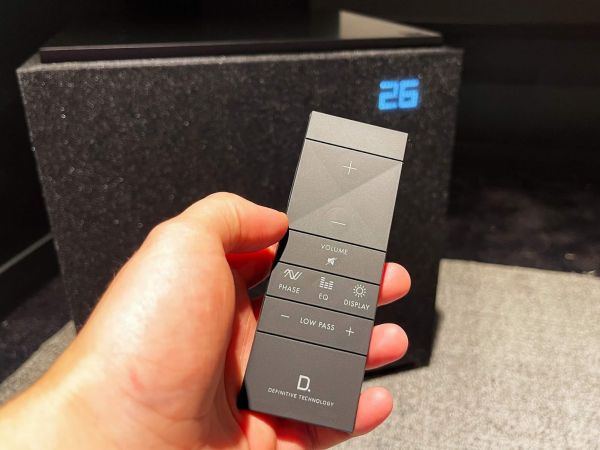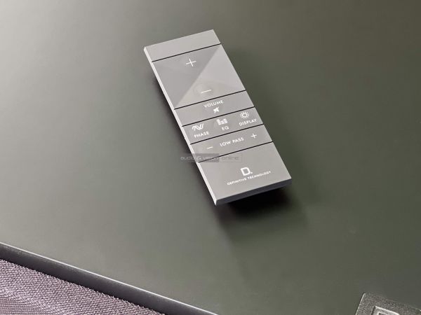 Szívből örültünk a mellékelt távirányítónak, amivel a hangerőn kívül vezérelhető a mélyáteresztő szűrő frekvenciája, változtatható a fázis és a kijelző fényereje, kiválasztható az EQ görbék valamelyike. Utóbbival érdemes kísérletezni az egyéni ízlés és a helyiség adottságainak függvényében. A fázis változtathatóságát Intelligent Phase Control névvel ruházták fel, ennek alkalmazása is szerepel az ajánlásunkban, bizonyos esetekben hangzás javítás érhető el vele.