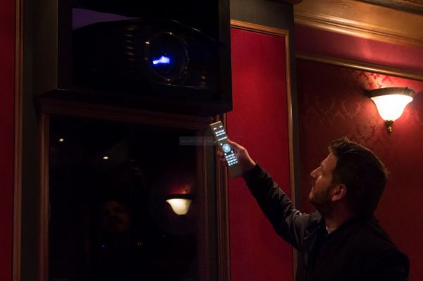 Nem volt fájó hiányérzetünk a látott produkcióval kapcsolatban, ez a fent leírtakból bizonyára kiderült, de feltétlenül meg akartuk tapasztalni a HELIOS tudásának maximumát, mégiscsak egy minden szempontból kivételes high end projektorról van szó. Megszerveztük az utazást és újfent elindultunk DreamVison nézőbe. Az említett végleges helye a vetítőnek egy dedikált moziszoba, méghozzá pazar kinézetű és kivitelű, méltó a HELIOS-hoz. A vetítési távolság kb. 7 méter, a perforált Stewart vászon 4 méter széles, amik együtt a projektorok többsége számára igazi, erőt próbáló feladatot jelentenek, ami a fényerőt és a sarkokban, képszéleken jelentkező élességet illeti. Már az Oblivion első képkockái láttán egyértelművé vált számunkra, hogy a szakszerű műszeres kalibrálás eredménye vitathatatlan, a színek helyükre kerültek, a fekete olyan mélységű volt, hogy csak plazma- és OLED tévékéhez hasonlítható. Számos más filmből néztünk meg rövidebb-hosszabb jeleneteket és elismeréssel nyugtáztuk a lézer fényforrásnak köszönhető, a hagyományos lámpákéhoz viszonyított szélesebb színteret. A HELIOS tulajdonosa nem rendelte meg a 3D-hez szükséges tartozékcsomagot, így térhatású élményben nem volt részünk, csak ahhoz hasonlóban. Mire gondolunk? Arra, amikor a néző azt érzi, szinte lemászik a kép a vászonról, annyira élethűek, plasztikusak az alakok. Szinte háromdimenziós a látvány, ilyet produkált a DreamVision HELIOS.