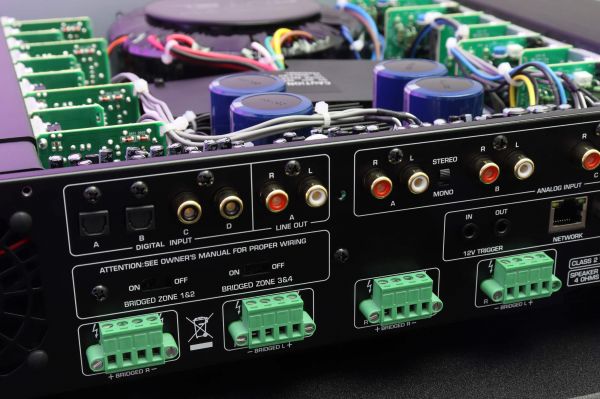 Az erősítőkön 4 pár analóg sztereó RCA bemenet található. Belső kapcsolás segítségével bármelyik bemenet jele továbbítható bármelyik kimenetre. Az erősítőhöz csatlakoztatott hangfalpárok hangerejét és a hangszínszabályzást függetlenül, zónák szerint lehet módosítani. Ugyanígy balansz beállítás is lehetséges. A C8+ erősítő nemcsak teljesítményben múlja felül a C8-at, hanem szolgáltatásokban is. Az analóg RCA opciók mellett két optikai és koaxiális digitális bemenetet is tartalmaz.