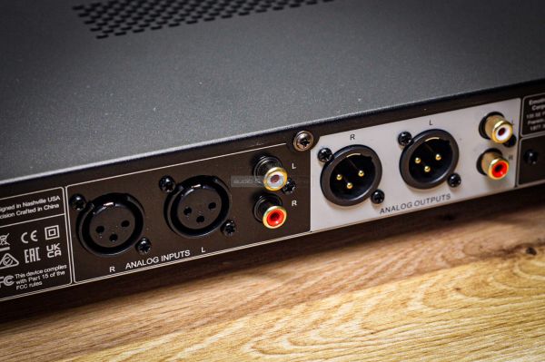 Tartalmazza a legelterjedtebb digitális bemeneteket (optikai, koaxiális, számítógépes USB), ráadásul egy HDMI ARC csatlakozót. Nyújt még RCA és XLR kimenetet és bemenetet, analóg jelútja ténylegesen szimmetrikus. Csak csatlakoztassuk egy erősítőhöz, aktív hangfalhoz vagy fejhallgatóhoz (Texas Instruments TPA6120A2 fejhallgatóerősítő biztosít jelet az előlapi 6,3 mm-es Jack kimenetnek) és szólhat a zene.