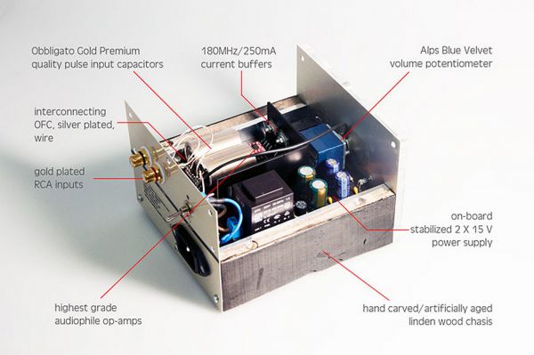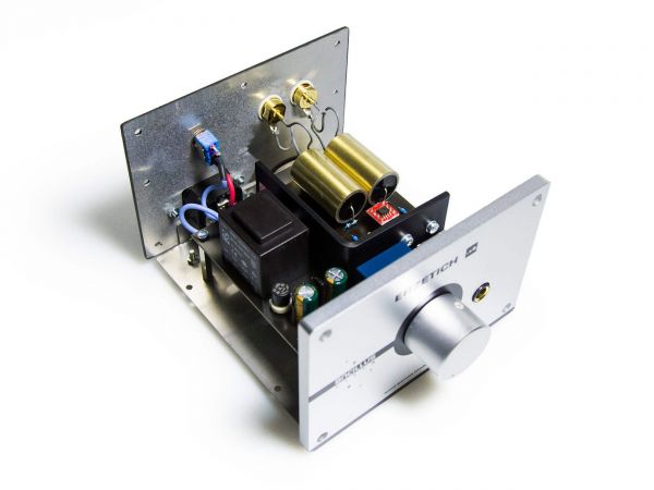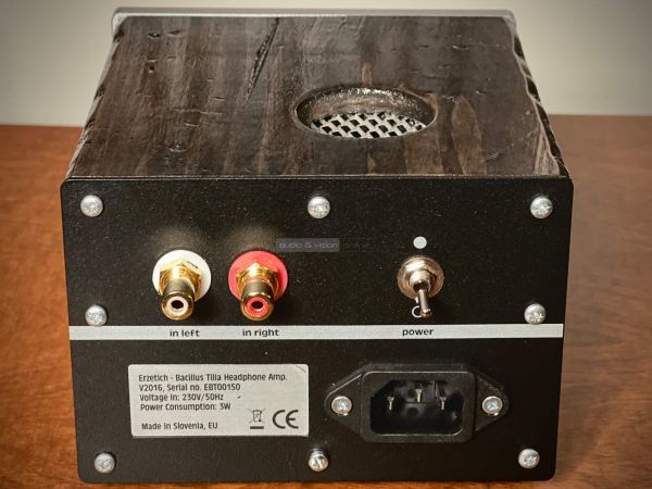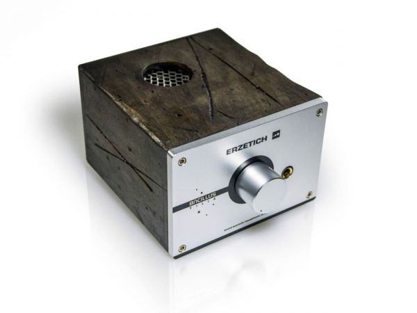 Maga az erősítő egy 130x160x90 mm-es kis "kockaszerűség", előlapja alumínium, amelyen a hangerőszabályzó és a 6,3 mm-es Jack kimenet, illetve a bekapcsolt állapotot jelző LED kapott helyet. A hátlapon pedig a billenő be/kikapcsolót, az IEC aljzatot és egy pár jó minőségű RCA bemeneti aljzatot találunk. Az erősítő fedőlapján a hársfa burkolat egységét egy kis kör alakú és ráccsal védett szellőzőnyílás bontja csak meg. Az Erzetich jó minőségű alkatrészeket használt (Obbligato Gold kondenzátor, audiofil műveleti erősítő (típusa nem ismert), Alps Blue Velvet hangerő potméter), a belső kábel ezüstözött réz, 2x15 V-os stabilizált tápegység és 180 MHz/250 mA-es puffer van a burkolat alatt. A kimenő teljesítmény első olvasatra nem magas, de hallgatva nagyon más a kép, és a teljesítmény gyakorlatilag impedancia független. Az Erzetich nagyon korrekt volt és nem játszott a számokkal, nem keresett egy mérési módszert, amivel esetleg egy magasabb névleges teljesítményt közölhetne. Egyszerűen építettek egy olyan erősítőt, ami működik: végső soron úgyis a meghallgatás dönti el, hogy a teljesítmény mire elég. Márpedig a Bacillus egy kis fenevad, gyors, ritmikus, tiszta és a sávszéleken kiterjedt előadásmódjához méreteit sokszorosan meghaladó meghajtási képesség társul, komoly meglepetésben részesül, aki lebecsüli!