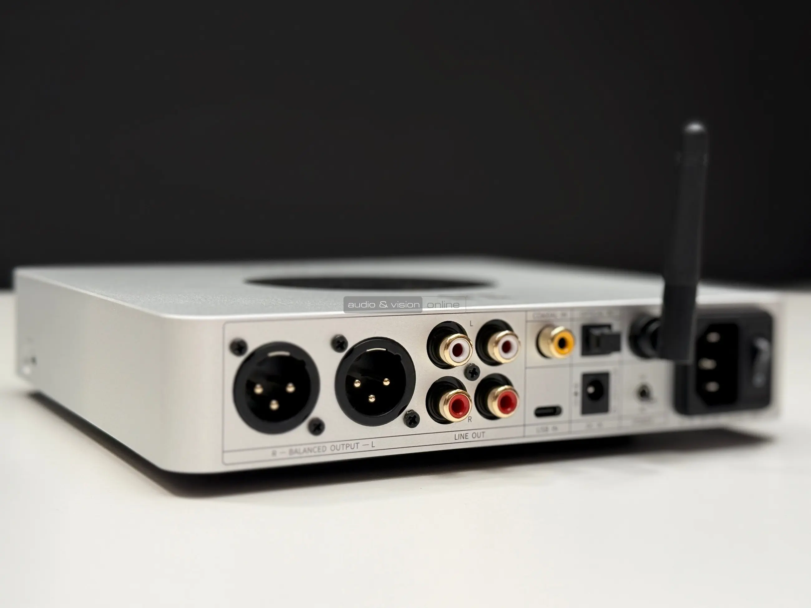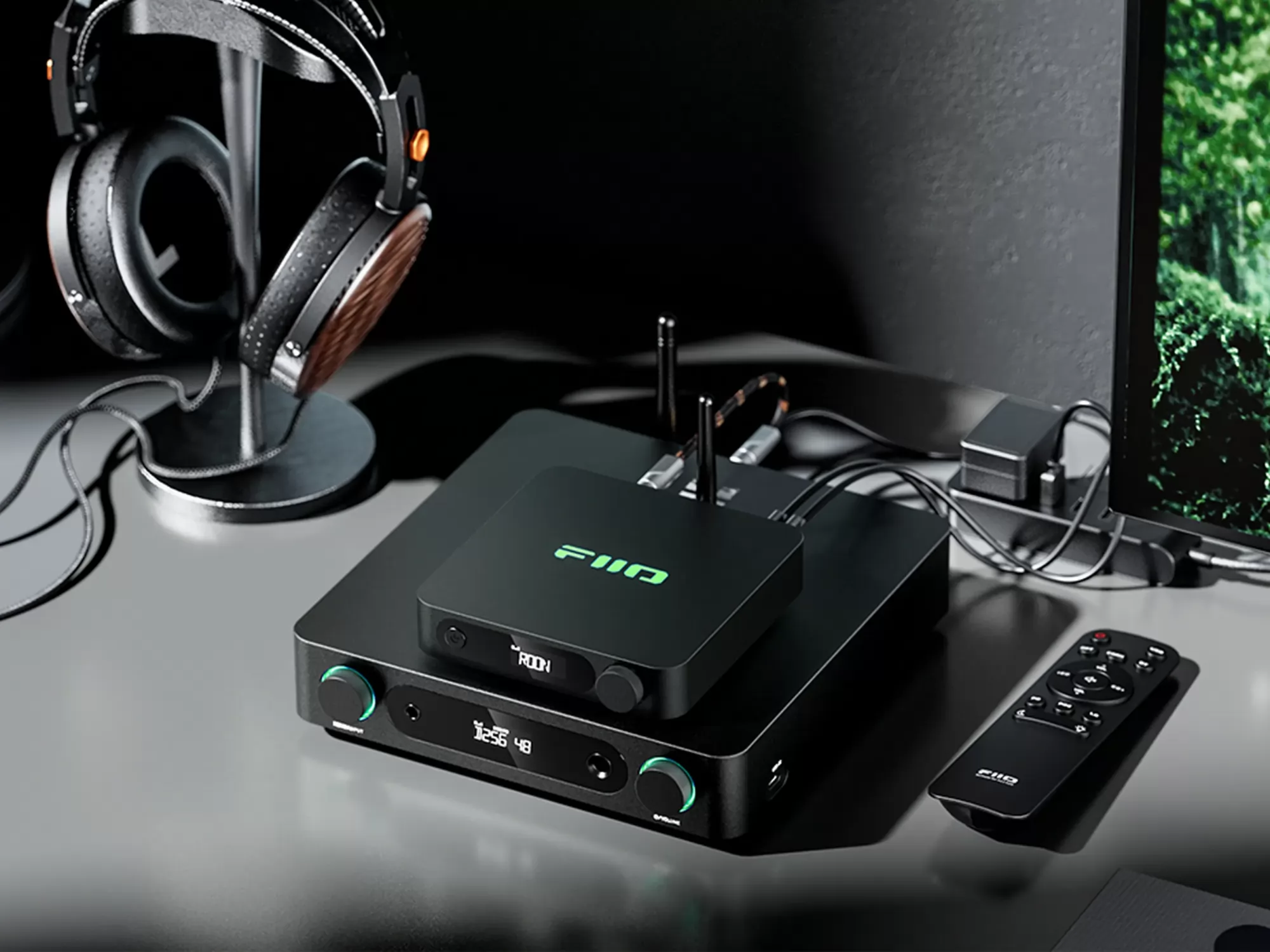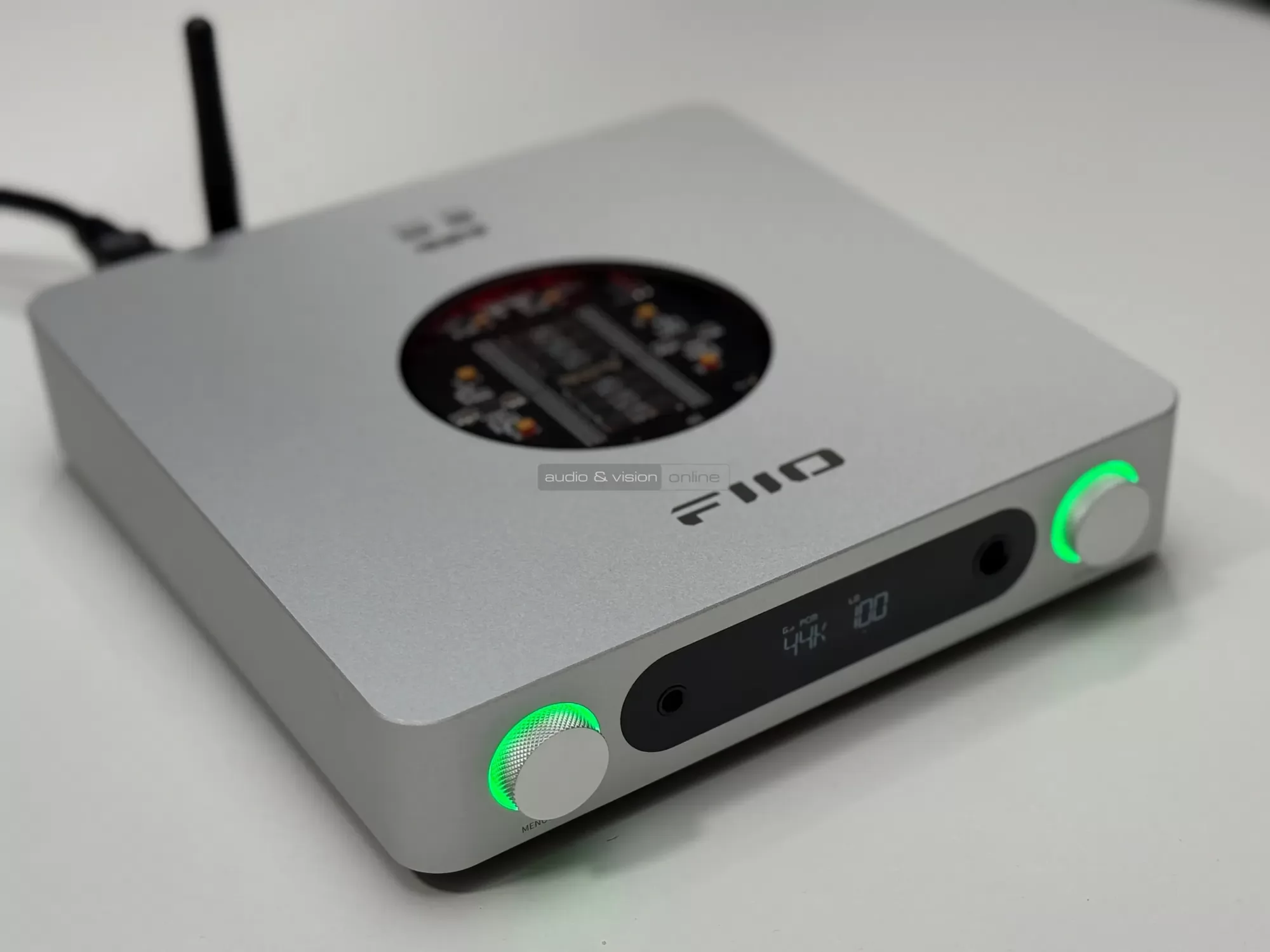 Aprócska doboz, aminek a tetején vágtak egy kerek nyílást, amit plexivel fedtek le, így működés közben is megcsodálhatjuk a DAC-unk belsejét. Az előlapi kijelző két oldalán helyezkednek el a tekerhető/nyomkodható kezelőszervek a beállításokhoz, amik használata erősen ajánlott a kihívásokat szerető hifistáknak, de szerencsére az elsődleges kezelőszerv a csomagban megtalálható távvezérlő amellyel kényelmesen elvégezhető minden beállítás (tehát még egyszer, távvezérlő!!! ebben a kategóriában) vagy használhatjuk a FiiO Control applikációval is. Itt találjuk a fejhallgató aljzatokat is. Hátul a már említett XLR kimenet foglal helyet a szokványos RCA mellett, amiből két párat kapunk. Van még természetesen USB, optikai és koaxiális bemenet is, sőt még egy 12 V aljzatot is kapunk, amin keresztül külső tápegységgel is etethetjük a kényes ellenállás hálózatot, de ott van a normál 230V tápaljzat is. Bluetooth (v5.4) kapcsolatot is kínál az összes fontosabb kodekkel - SBC, AAC, LDAC.