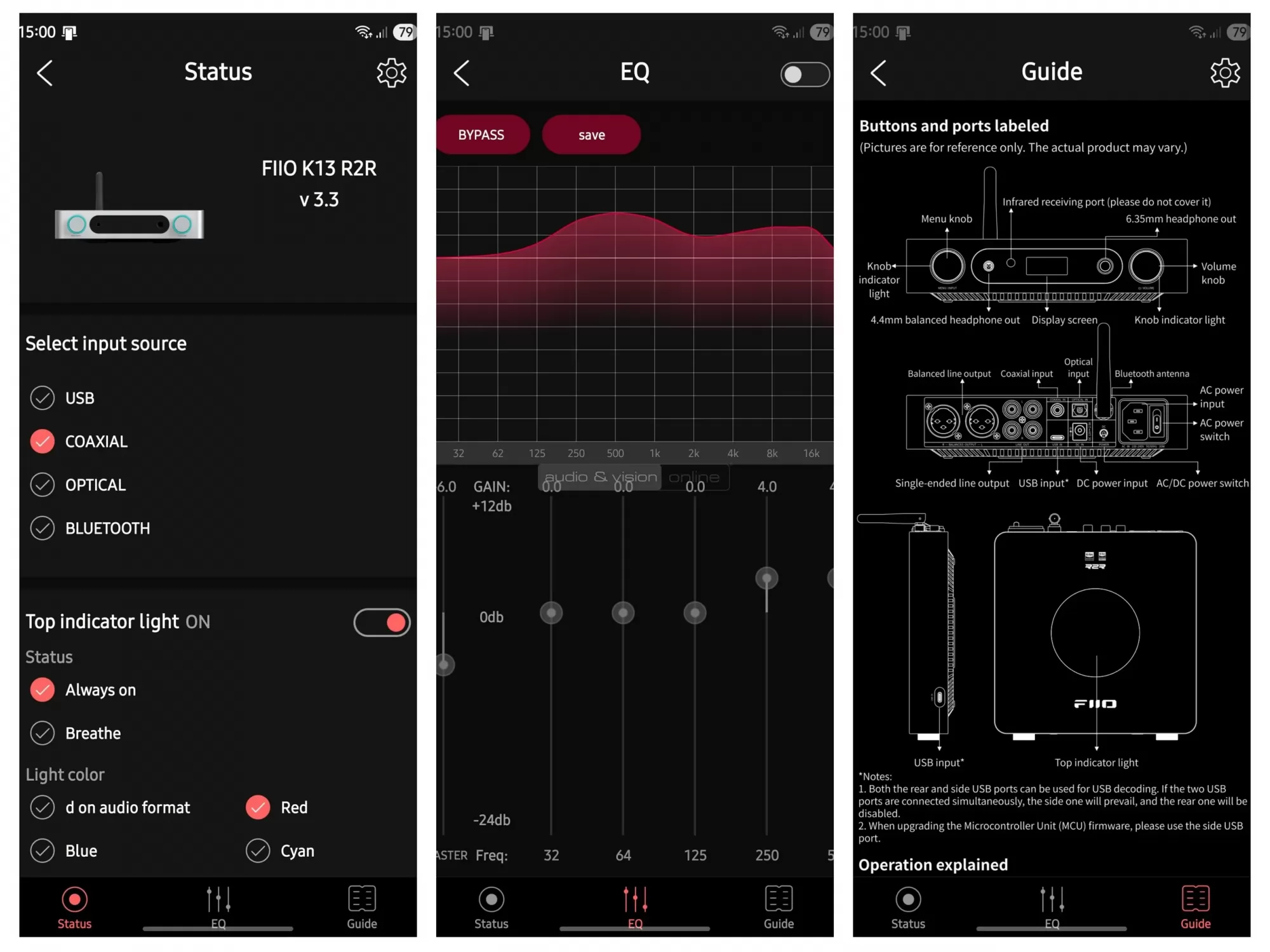 Üzembiztosan, akadozások nélkül működött a teszt alatt a FiiO K13, zavaró hangokat nem fedeztünk fel a zenében. Mivel beállítható a kijelző és a tején lévő nyílás megvilágítása különböző színekkel, így azt is kipróbáltuk, de nekünk jobban tetszett, mikor ki volt kapcsolva - ízlés kérdése kinek, mi. Mindezek mellett választhatunk a megszokott OS, azaz túlmintavételezéses és az NOS (natív DA átalakítás) között, ahol az OS mód hasonlít a legjobban a szokványos DAC-ok hangjához, míg a NOS a natív R2R átalakítás.