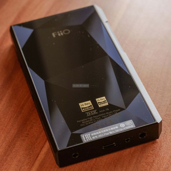 A megépítettség, anyagminőség tisztességes. A fekete alumínium készülékház kissé szögletes, de (különösen az alaptartozék védőtokkal kiegészítve) jól kézbe simul. A FiiO kicsit újított a dizájnmotívumain, melynek eredményeként e lejátszó méhsejt alakú gombokkal rendelkezik. Baloldalt kék háttérfényben úszik a ki/bekapcsológomb. Ez alá került a hosszúkás, újgenerációs hangerőszabályzó. Utóbbit saját belátás szerint használhattuk hagyományos nyomógombként (ekkor fizikailag érezhető kattanással reagált), vagy érintésérzékeny felületként. Az egyértelmű(bb) visszajelzés érdekében az érintés-alapú jelszintvezérléshez is hangjelzést párosított a FiiO. Ilyenkor halk "csattogást" hallottunk, ami elsőre kissé meglepő volt. Szerencsére a menüben kikapcsolhattuk ezt a segédhangot. De mielőtt a szoftveres oldalra térnénk, lássuk a készülékház többi részét!