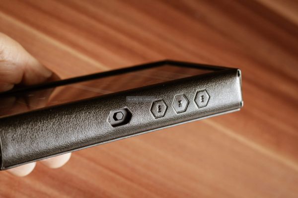 Az alsó részen sorakozik egy 4,4 mm-es Pentaconn, továbbá egy 2,5 mm-es szimmetrikus Jack. Középre igazították a töltésre/jelátvitelre szolgáló USB aljzatot, amelytől jobbra egy 3,5 mm-es, digitális koaxiális hangkimenettel kombinált Jack aljzat zárja a sort. Jobboldalra rendezték a fentebb említett kártyanyílást, egy mechanikus billentyűzár kapcsolót, továbbá a szokásos, zenei navigációra szolgál három gombot. Az üveggel fedett hátoldal kristályszerű mintázatot kapott. E felület pillanatokon belül összeszedte az ujjlenyomatokat, ezért is volt hasznos a mellékelt védőtok, amibe másodperceken belül bebújtattuk tesztkészüléket.