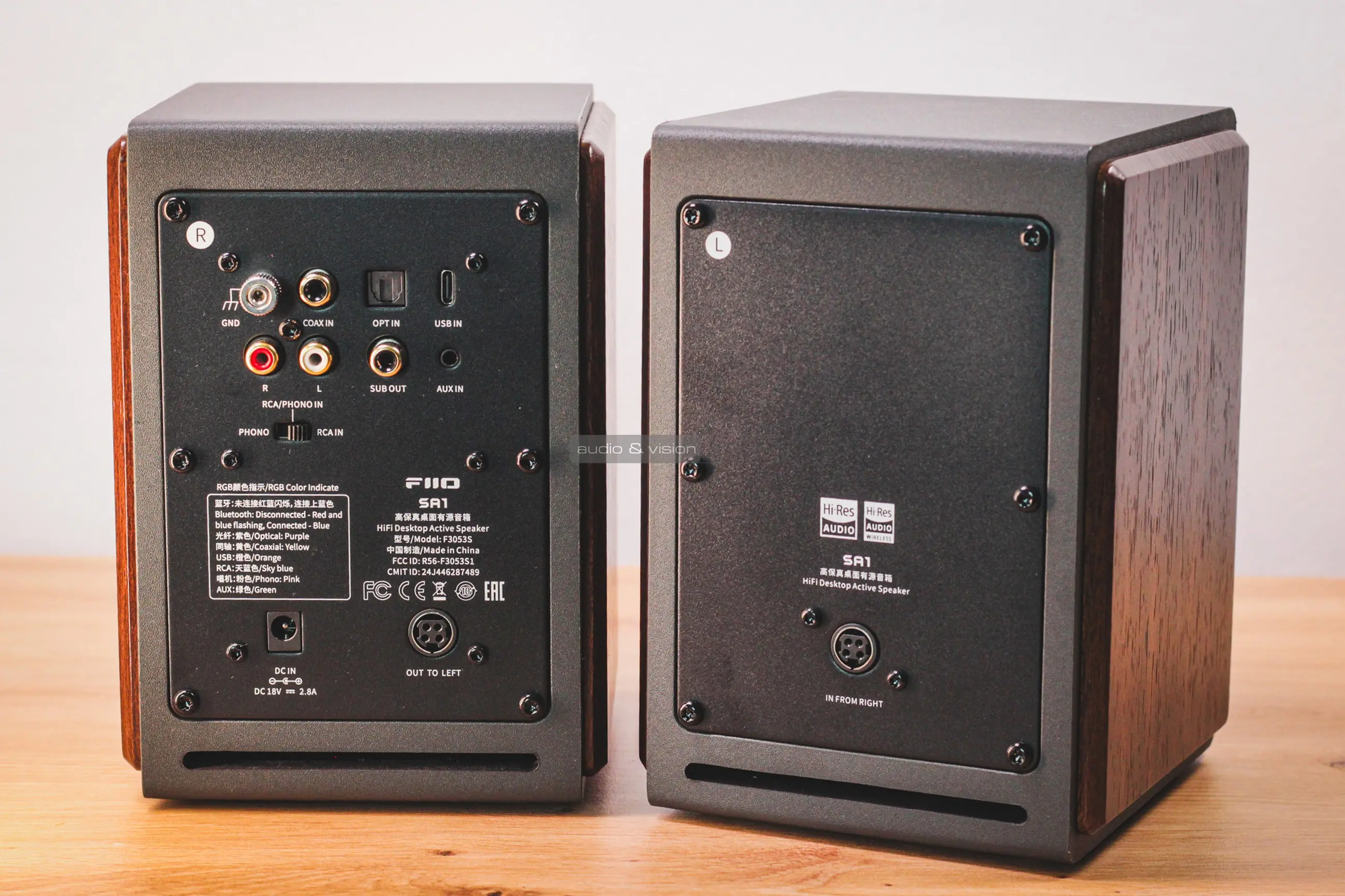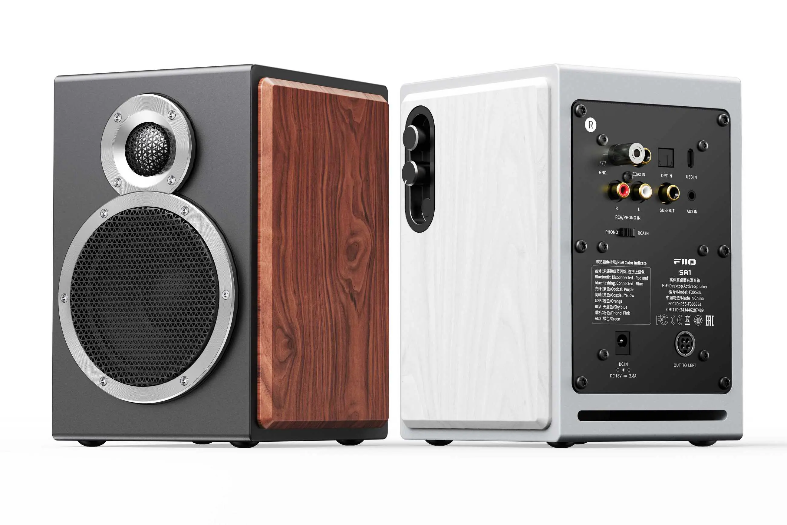A FiiO SA1 vizuálisan a minimalista, óvatosan dekorált irányzatot képvisel. A formaterv a hagyományos polcsugárzókra emlékeztet, egyszerű vonalakkal és MDF fa dobozzal, amely "alkonyfekete" (sötétbarna fahatású oldalak, sötétszürke középrész) és "felhőfehér" (fehér oldalak, világosszürke középrész) színekben is elérhető. Ez a megközelítés eltér a FiiO másik, markáns és futurisztikus megjelenésű SP3 modelljétől. Utóbbi bordázott fémdobozzal és RGB LED hangulatvilágítással rendelkezik, a modern gamer és multimédiás asztalokra lett tervezve. Vele szemben az SA1 hagyományosabb, otthonosabb környezetekbe illeszkedik, Az MDF, az oldalsó faminta és a hangszórót diszkréten védő rács kombinációja kellemes összképet teremtenek, amely egy "cozy" hangulatra törekszik.