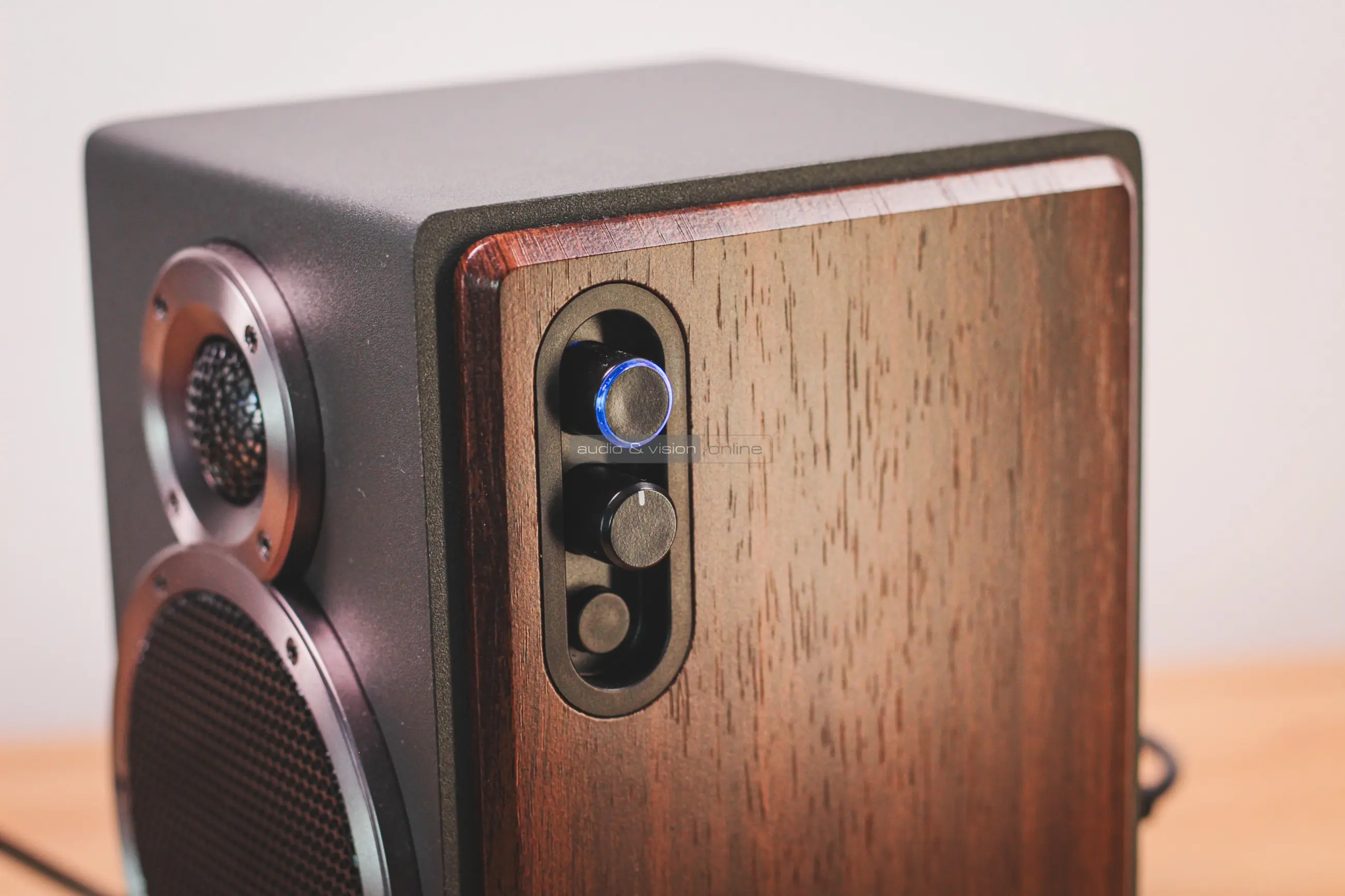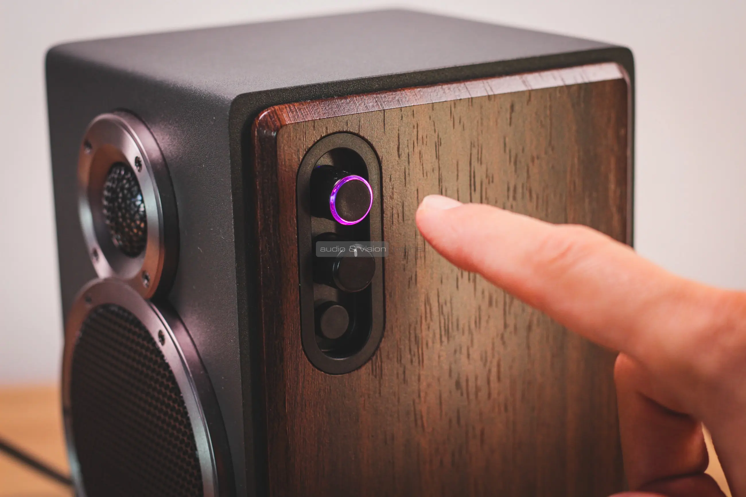 A hangszórók használata rendkívül egyszerű. A vezérlőfelület az aktív, jobb oldali hangsugárzó oldalán található, ahol két forgó gomb (vagy ahogy sokan nevezik, potméter) helyezkedik el. Az egyik a hangerő és a bemenetválasztás kombinált funkcióját látja el, élén RGB LED fénye szűrődik ki, mutatva az aktuális bemenetet. A másik potméter basszus szabályozásra szolgál. Ezek alatt egy ki/bekapcsoló gomb is fészkel.