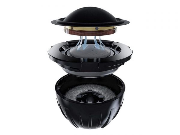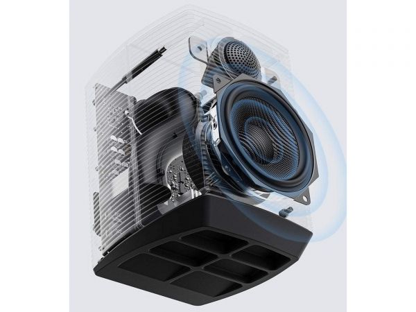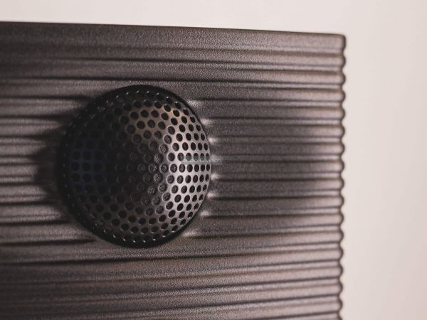 FiiO DAP és fülhallgató tesztelés során is feltűnt, hogy a gyártó szereti mintákkal díszíteni termékeit. Az SP3 formája nem az unalmas kerekített sarkú téglatest. Oldalain ívelt és tetőtől talpig vízszintes, barázdált sávok futnak körbe rajta. A magassugárzóra előrelátóan védőrácsot helyeztek. Apró figyelmesség, hogy a dóm köré egy hullámvezetőt formáló mélyedést is terveztek. Mindezt kiegészíti a menő látványú, szénszál membrános mélyközépsugárzó és a világító talp. Utóbbi megosztó lehet, de aki sokallja, kikapcsolhatja. Szerintünk a kezdeményezés jó. Egy gamer íróasztalán íratlan szabály, hogy minden elektronikus eszköznek váltakozó RGB színben kell pompáznia. Az alsó LED csak alacsony fényerővel világít és különböző színprofilok közül lehet választani.