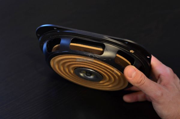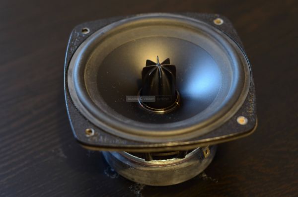Ahogy eltávolítottuk a fekete leplet, azonnal elkezdtek előbújni a csemegének számító részletek. A hangsugárzó eleje lényegében egy ívelt védőrács, mely mögött egy cseppet sem hétköznapi hangszórókészlet bámult a szemünkbe, melyek nem mellesleg a nagyobb testvérekből származnak, csak mennyiségükben térnek el azoktól.