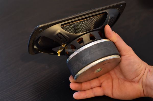 Itt jön a következő érdekes adat a Triton Three+ táblázatából. A gyári adatok szerint 21 Hz az alsó frekvencia határ, ami több mint érdekes egy ilyen keskeny felépítésű, alacsony dobozból. Hogy lehetséges ez? A mélysugárzó mérete még nem feltétlenül indokolná ezt, de a 228 x 127 mm-es szögletes mélysugárzó mögött egy hatalmas mágnes dolgozik, valamint a membrán gumipereme is jellegzetesen "szub"-os, tehát nagy terhelésre találták ki.