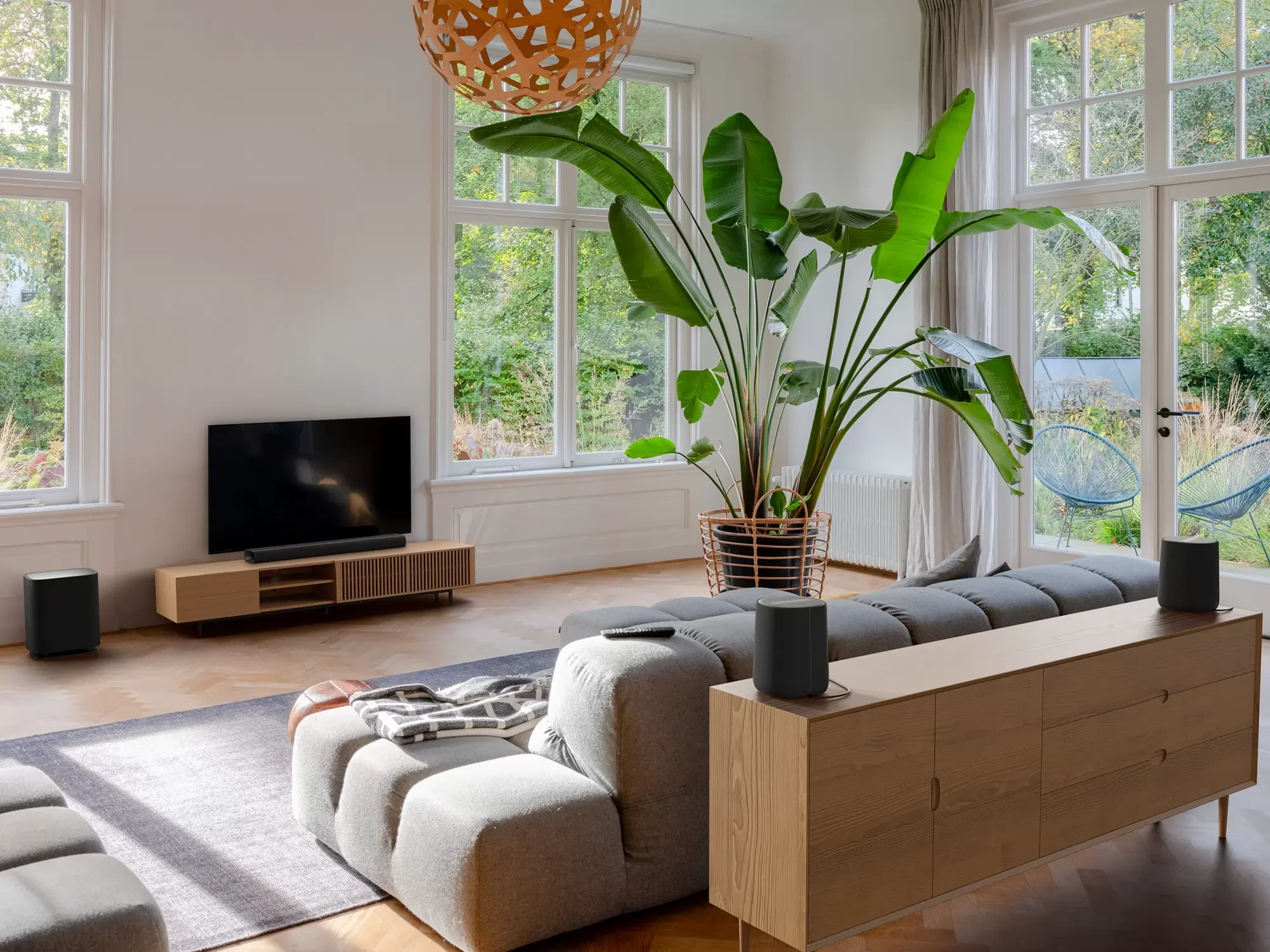 Le kell szögezni, hogy a Harman Kardon Enchant Speaker is alkalmas komplett házhangosításra, amennyiben úgy döntünk, hogy többet helyezünk el belőle otthonunkban. Többek között Chromecast, AirPlay és Spotify Connect kliensekkel is rendelkezik. Talán felesleges megjegyezni, hogy TIDAL Connect használatával szintén működik, ami azért egy kulcs jellemző, mert egyelőre csak azon keresztül fognak valós Dolby Atmos tartalmak megszólalni (az AirPlay-ből 2-es verzióra lenne szükség, ami további feltételek mellet tudja ezt a hangformátumot továbbítani). Egyébként Bluetooth vevőt szintén tartalmaz (5.2 verzióval) és a helyi hálózathoz nemcsak WiFi, hanem Ethernet kábel alapon is képes kapcsolódni.