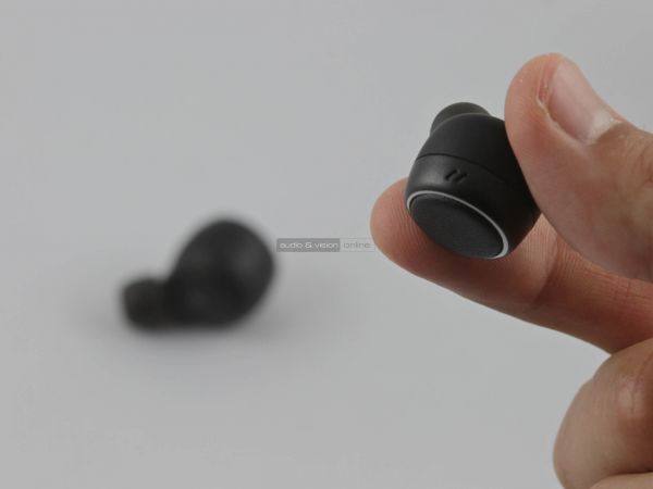 A fülhallgatók külső oldala ugyanaz a bőrhatású anyag, amely a dokkoló tetejét borítja. Ezt határolja egy krómozott gyűrű, amely ékszer jellegű dizájnt kölcsönöz a jó minőségű műanyagból formált háznak. A fülhallgatókba is építettek egy-egy állapotjelző LED-et, természetesen más TWS vetélytársakhoz hasonlóan ezek is mágnesesen "ugranak" vissza a töltő foglalatba.