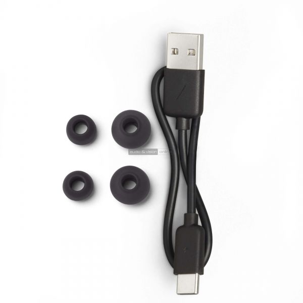 Fém hangkivezető nyílását védőrács fedi a szennyeződések ellen. Természetesen különböző méretű szilikonos fülillesztékek is járnak a fülhallgatóhoz. A töltés az aktualitásoknak megfelelően USB-C kábellel lehetséges.