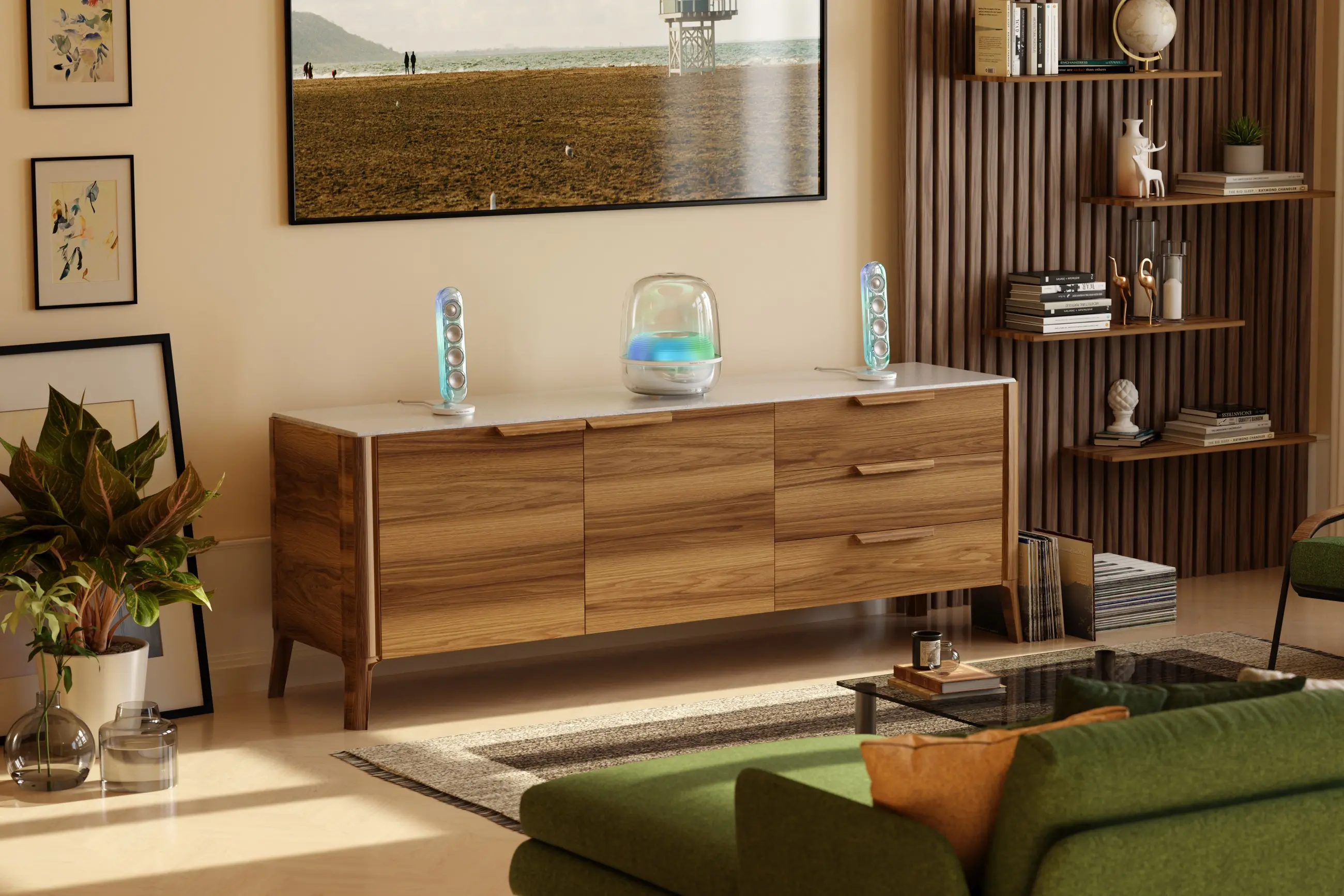A Harman Kardon SoundSticks 5 nem egy klasszikus értelemben vett állványos hangfal, de nem is egy egyszerű multimédiás PC-hangfalszett. Kicsit önmaga kategóriája. Főleg azoknak a felhasználóknak készült, akiknél a vizuális élmény és a funkció szoros egységet kell, hogy alkosson. Míg a korábbi generációk inkább Apple számítógépek kiegészítőjeként vonultak be a köztudatba, ez a kiadás a fent említett frissítések által, szélesebb közönséget céloz meg. Ahogy a gyártói fotók is sugallják, nincs akadálya annak, hogy nappaliban, soundbar alternatívaként használjuk.