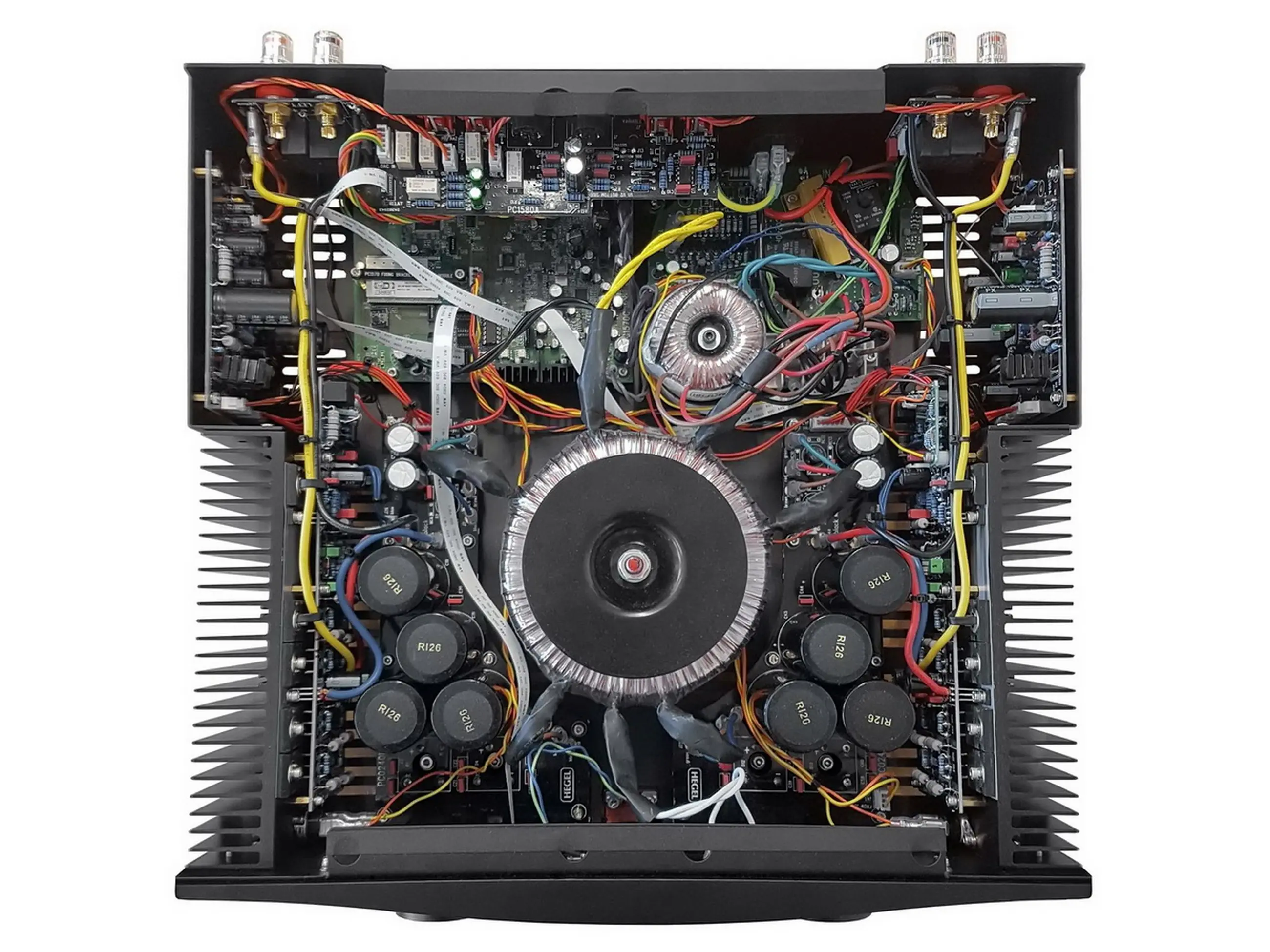 Elég sokoldalú tehát a készülék, de a beüzemeléstől nem kell tartanunk, mert a csatlakozók is logikusan és szeparáltan helyezkednek el a hátoldalon. A dual mono felépítésnek köszönhetően két szélen vannak a hangfalkimenetek, közöttük egy-egy pár fix és szabályozható RCA kimenet, kettő analóg bemenet, de ebben a kategóriában természetesen jár még hozzá XLR is.