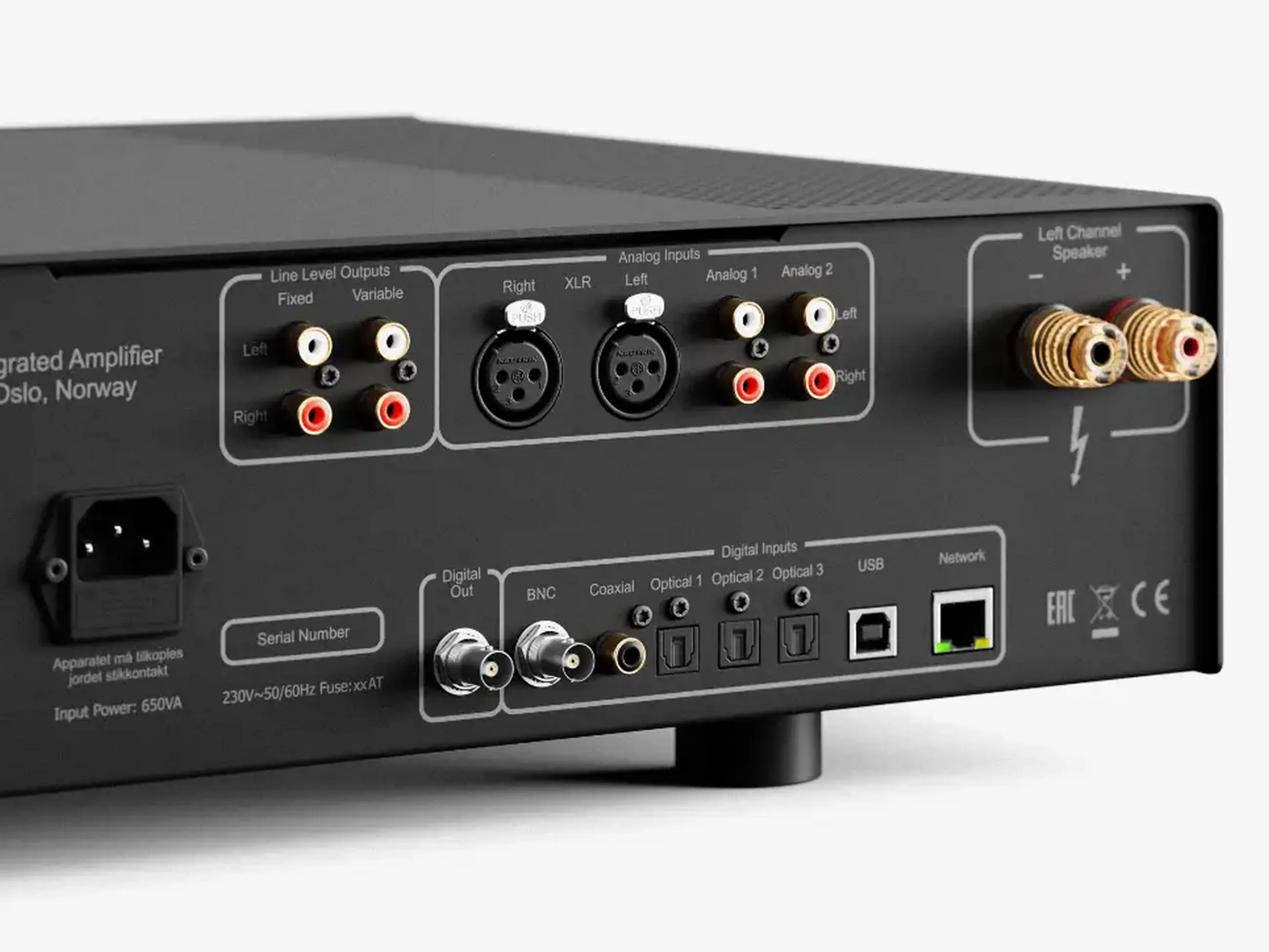 Digitális bemenetek terén van kettő koaxiális (RCA és BNC), három optikai, egy USB és egy Ethernet, kimenetből pedig egy koaxiális (BNC), a tápkábel pedig cserélhető. A lejátszható formátumok közül az MP3, WAV, FLAC, ALAC, AIFF, DSF, DFF, AAC, PCM, MQA és Ogg található meg, de rendelkezésünkre áll a DSD256 is.