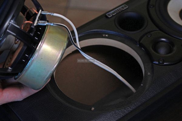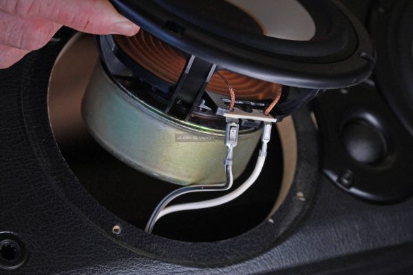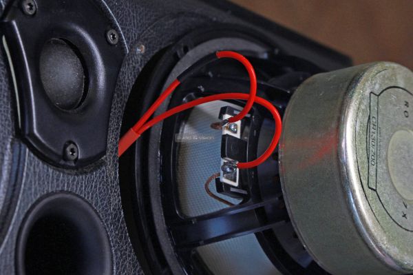 Később egy másik projekt tanúi lettünk. A tulajdonos régi Mission házimozi hangfalszettjét szerette volna felfrissíteni. A hangszórók kivételekor láthatóvá vált a széles körben alkalmazott, sodort rézből készült, vékony, PVC szigetelésű kábel, amelyet csúszósaruval rögzítettek a csatlakozóra.