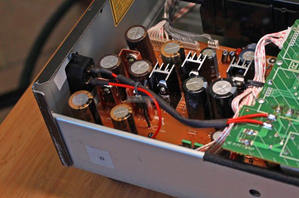 Az alábbi készüléken annyi módosítást eszközöltek, hogy a gyárilag fixen rögzített, vékony kábelt IEC tápaljzatra cserélték, majd beépítettek egy hozzá illő, néhány centis kábelszakaszt is.