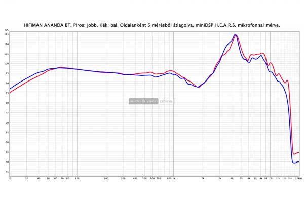 A méréssel láthatóvá is válik, hogy a széles átlaghoz képest kevésbé tolakodó az ANANDA-BT basszusa. A mély-közép frekvenciák linearitása figyelemre méltó. 4 kHz-nél váratlan csúcs jelenik meg, aminek köze lehet a szisszenő, csattanó részletek kontrasztos, tömörebb megjelenésében. 10 kHz fölött folyamatos süllyedés figyelhető, 16 kHz fölött pedig már nincsen mérhető jel (Bluetooth jelátvitellel készült mérés).