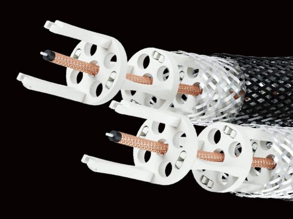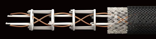 Az Inakustik szellemes megoldást fejlesztett ki ezen hatások eliminálására, az árnyékolásokkal ebben az esetben sem spóroltak, viszont jó messzire helyezték el egymástól a feszültséget vezető drótokat egy kis műanyag korong (Air Helix) segítségével és még spirálisan meg is tekerték őket menet közben. Cross Link Super Speed hullámvezető polietilén burkolja be a fonott, tellur-réz vezetővel ellátott magot. A tellur-réznek kétszer nagyobb a vezetőképessége, mint a sima réznek, itt még be is lakkozzák a külsejét. A csatlakozókat nem forrasztással, hanem egy másfél tonnás préssel nyomják össze a tellur-rézzel, ami optimális kapcsolatot biztosít a ródiummal bevont RCA/XLR/IEC táp érintkezőivel.
